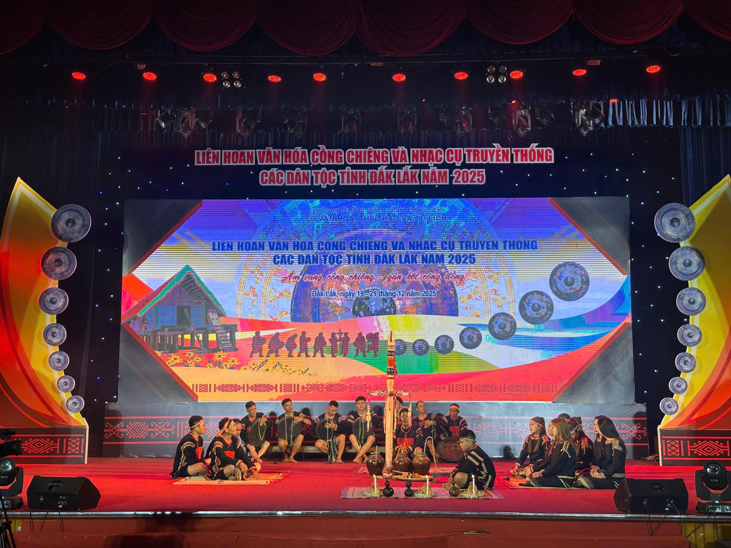 Liên hoan diễn ra trong 3 ngày, từ 19 đến 21/12, với chủ đề “Âm vang cồng chiêng – gắn kết cộng đồng”, các đoàn nghệ nhân tham gia trình diễn cồng chiêng, nhạc cụ truyền thống, tái hiện không gian sinh hoạt văn hóa cộng đồng gắn với lễ hội, phong tục tập quán đặc trưng của từng dân tộc. Nhiều tiết mục được dàn dựng công phu, thể hiện sự gắn kết hài hòa giữa âm nhạc, nghi lễ và đời sống cộng đồng.