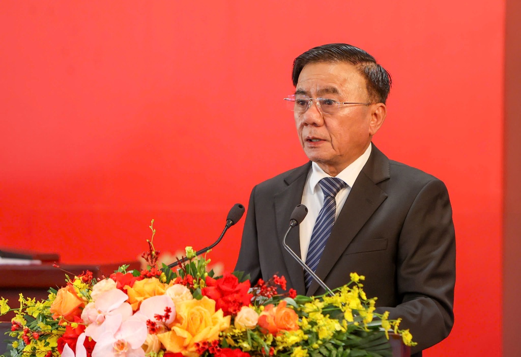 Ủy viên Bộ Chính trị, Thường trực Ban Bí thư Trần Cẩm Tú phát biểu tại họp báo. Ảnh: Lê Dũng.