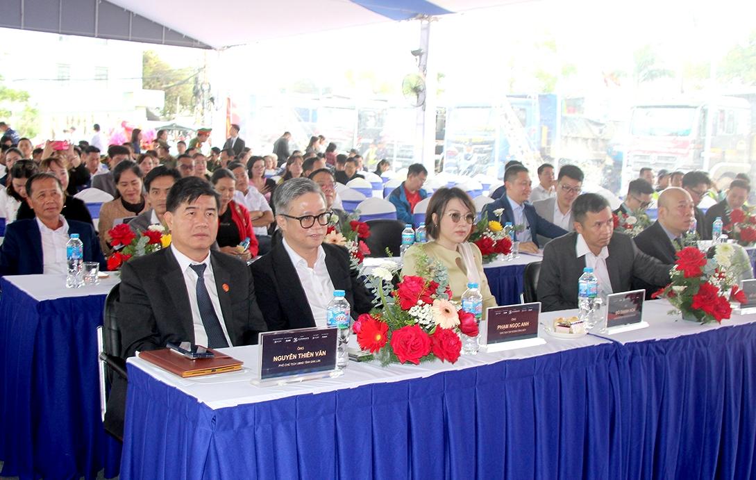 Phó Chủ tịch UBND tỉnh Nguyễn Thiên Văn cùng các đại biểu thực hiện nghi thức khởi công dự án.