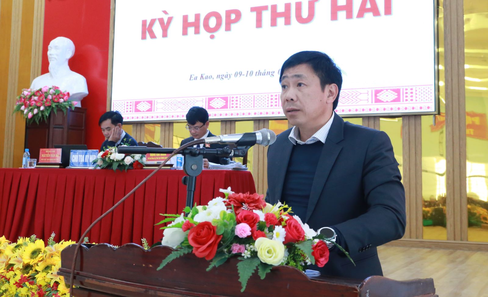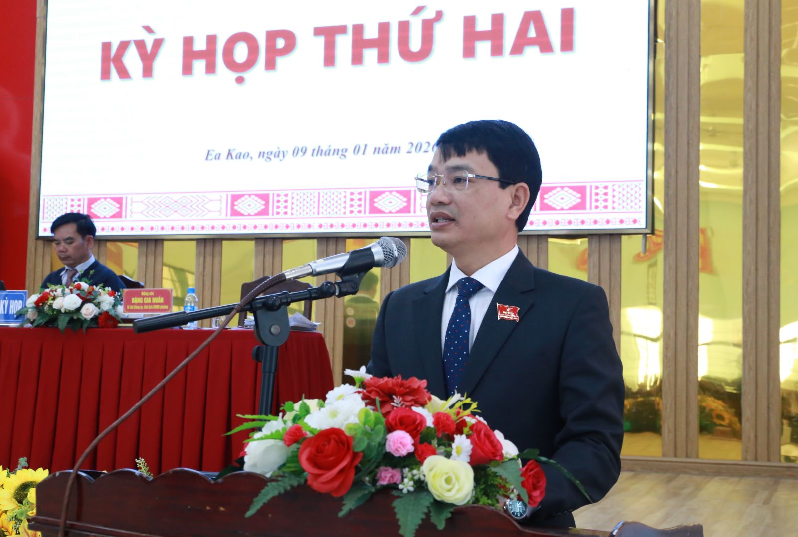 Bí thư Đảng ủy, Chủ tịch HĐND phường Ea Kao Đặng Gia Duẩn và Phó Chủ tịch HĐND phường Ea Kao Nguyễn Văn Độ đồng chủ trì kỳ họp.