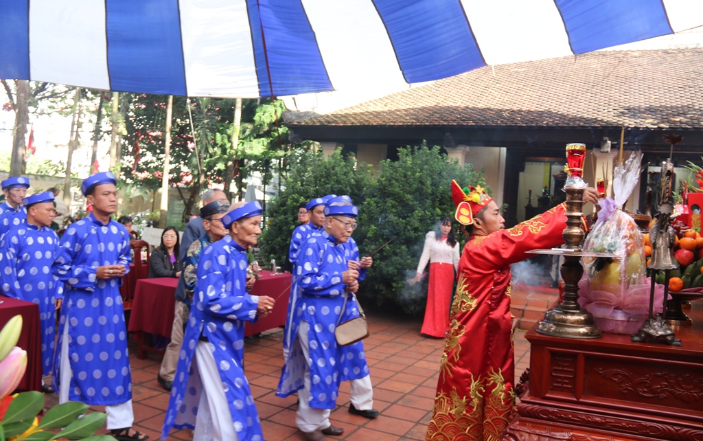 Các bô lão Đình Lạc Giao dâng hương tưởng niệm các chiến sĩ Nam tiến hy sinh và đồng bào Lạc Giao tử nạn.
