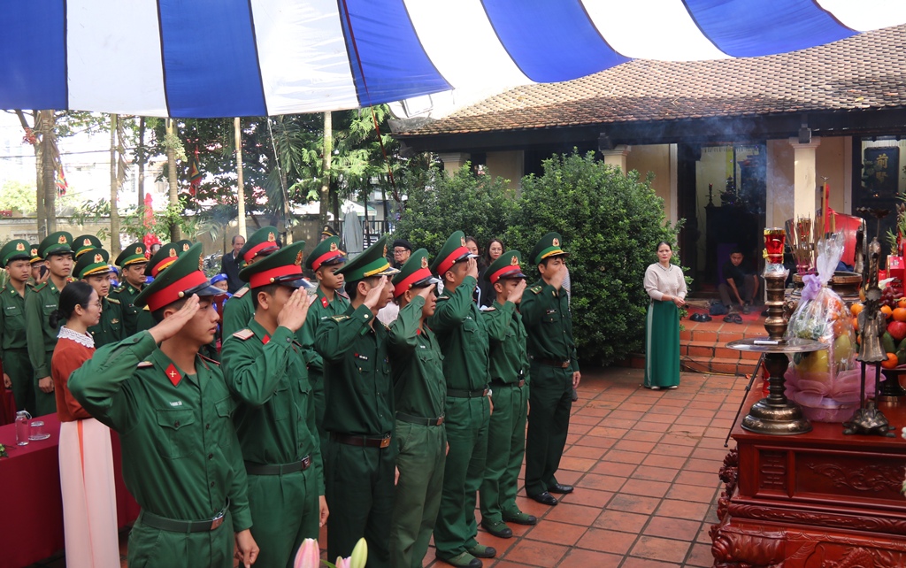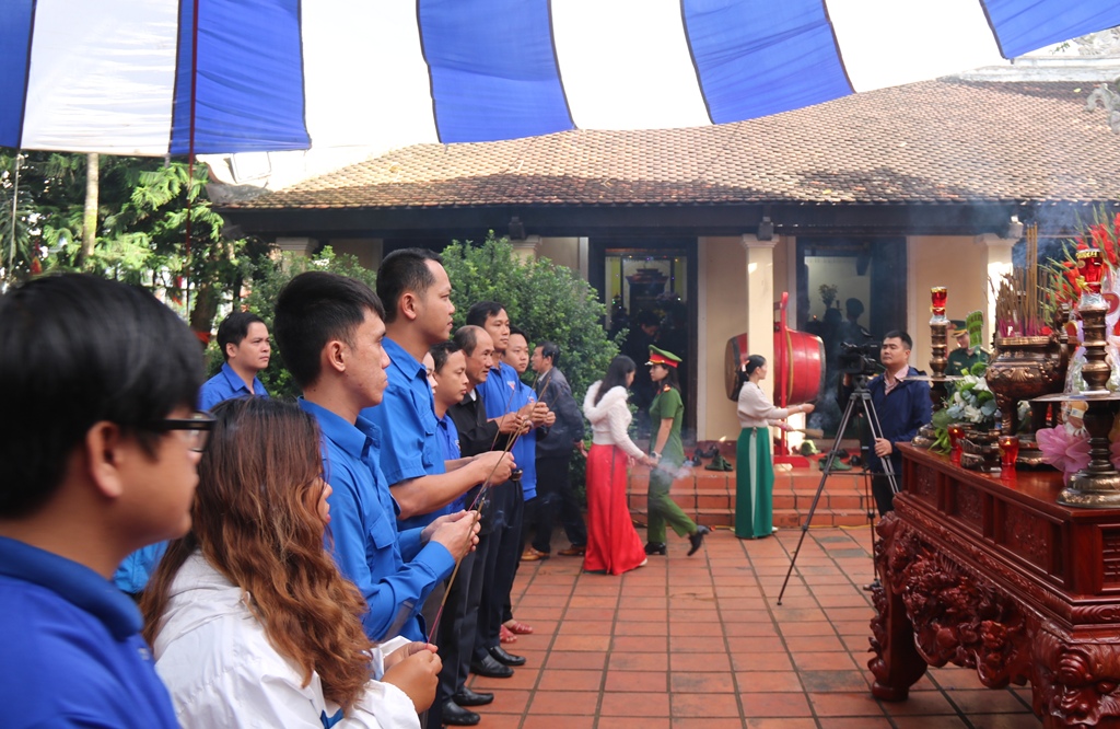Khối lực lượng vũ trang và đoàn viên thanh niên thành kính dâng hương.