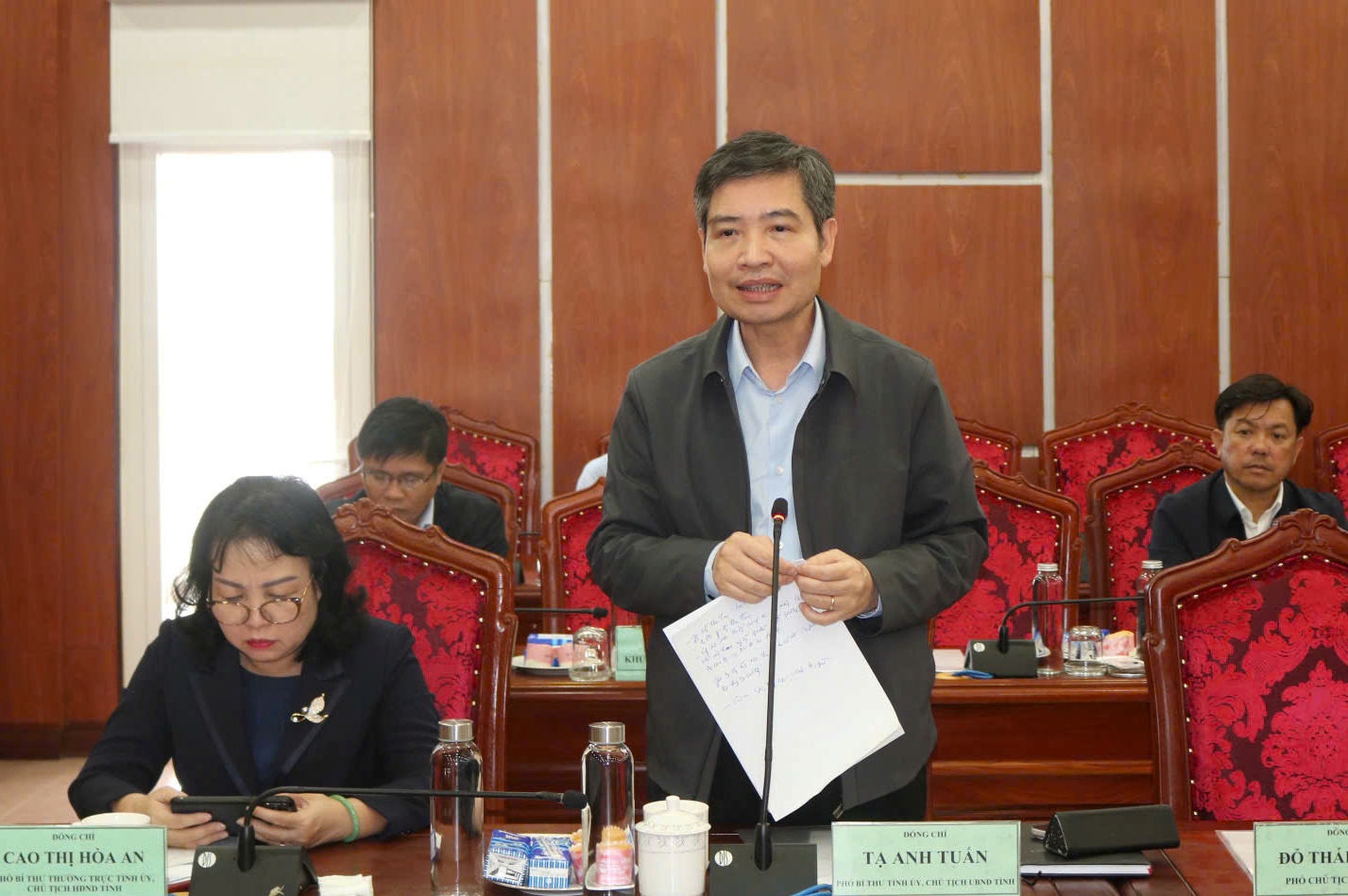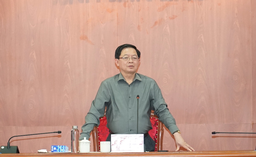 Chủ tịch UBND tỉnh Tạ Anh Tuấn báo cáo tại buổi làm việc.