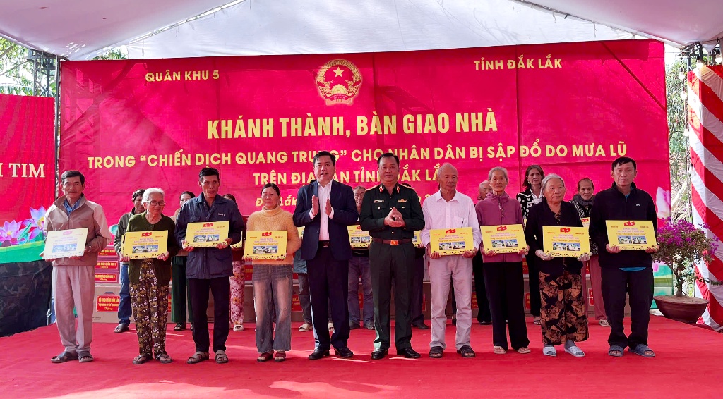 Sáng 10/1, tại phường Hòa Hiệp, tỉnh Đắk Lắk, Quân khu 5 phối hợp với UBND tỉnh Đắk Lắk tổ chức lễ khánh thành và bàn giao 229 căn nhà cho các hộ dân có nhà bị sập đổ hoàn toàn do thiên tai trên địa bàn tỉnh (đợt 2). Tham dự có Thiếu tướng Trần Thanh Hải, Phó Tư lệnh Quân khu 5; Trần Hữu Thế, Ủy viên Ban Thường vụ Tỉnh ủy, Phó Chủ tịch Thường trực Ủy ban MTTQ Việt Nam tỉnh cùng các sở ngành, đơn vị, địa phương và các hộ nhận nhà đợt này.