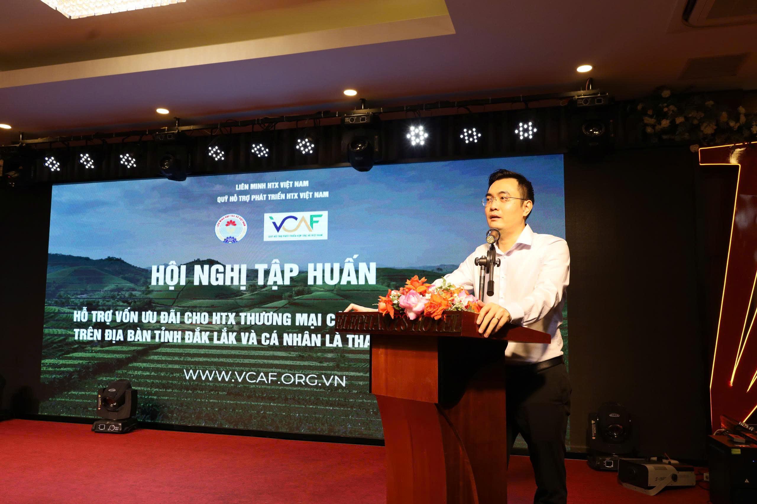 Sáng 15/12, Quỹ Hỗ trợ Phát triển Hợp tác xã (HTX) Việt Nam – Liên minh Hợp tác xã Việt Nam phối hợp cùng Quỹ Hỗ trợ Phát triển HTX tỉnh Đắk Lắk và Liên hiệp Thương mại Công bằng Việt Nam tổ chức Hội nghị tập huấn tập huấn phổ biến cơ chế, hướng dẫn lập hồ sơ vay vốn từ Quỹ hỗ trợ phát triển hợp tác xã Việt Nam tại các tỉnh.