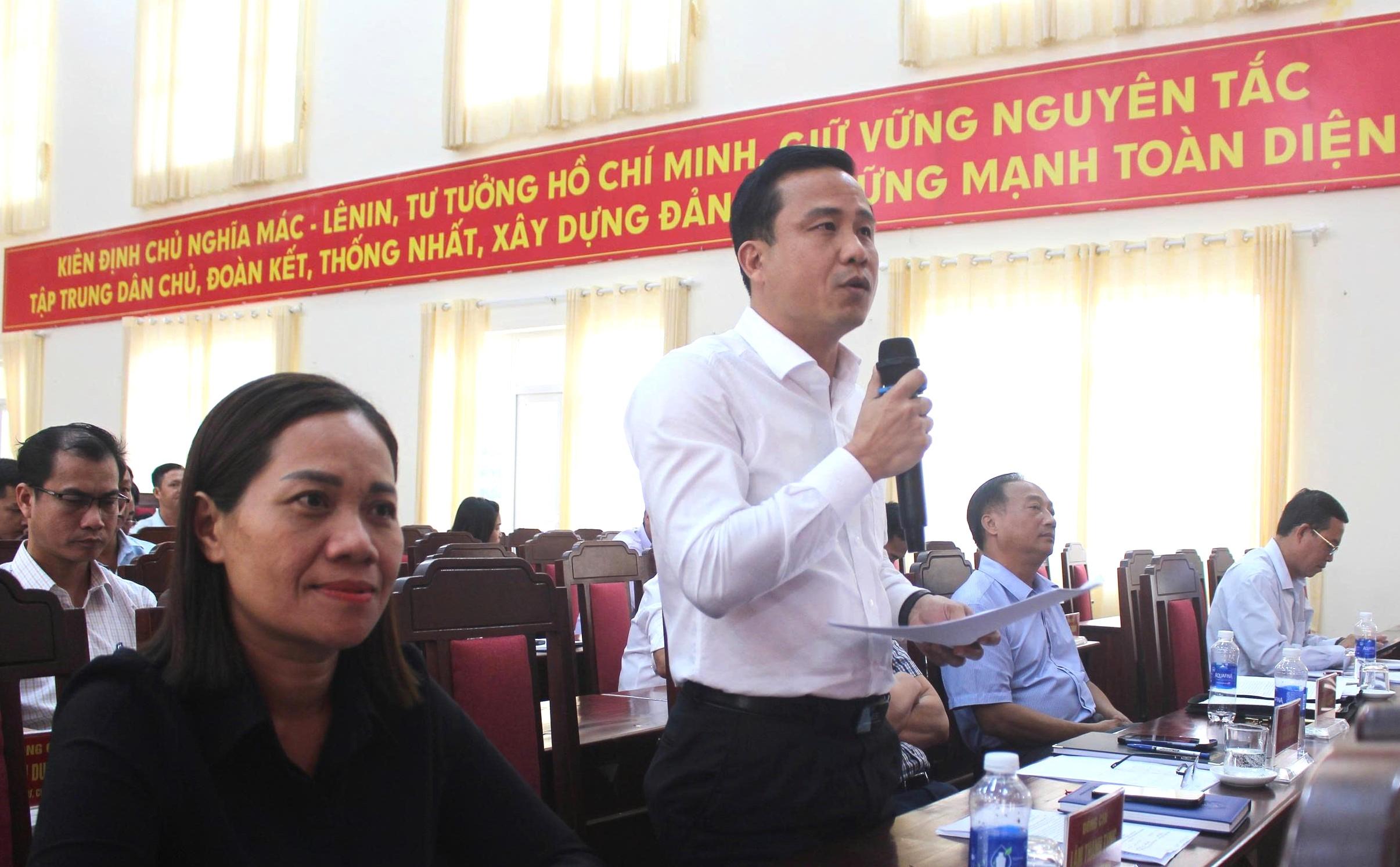 Bí thư Đảng ủy, Chủ tịch HĐND xã Hòa Sơn Lâm Thanh Tùng nêu kiến nghị tại buổi làm việc.