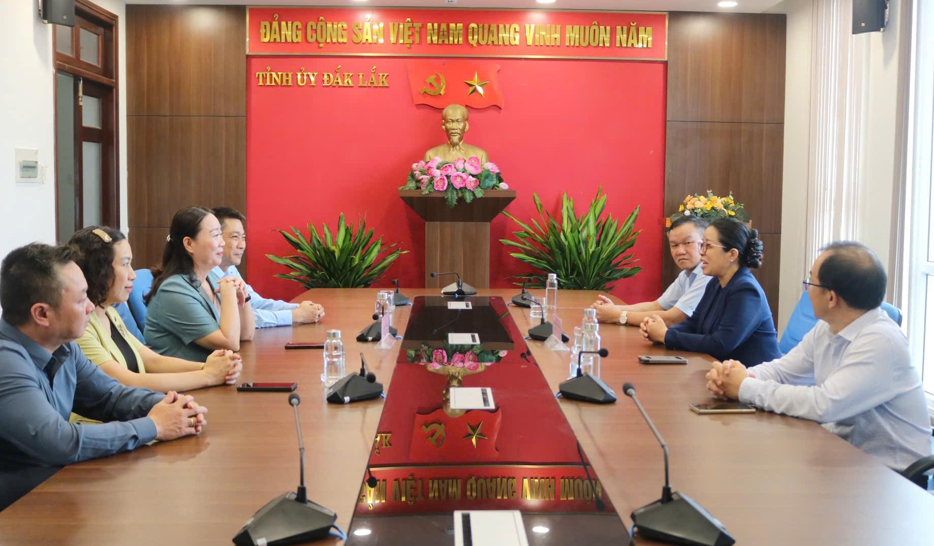 Tiếp đoàn có các đồng chí: Huỳnh Thị Chiến Hòa, Phó Bí thư Tỉnh ủy; Đào Mỹ, Phó Chủ tịch UBND tỉnh cùng lãnh đạo Văn phòng Tỉnh ủy.