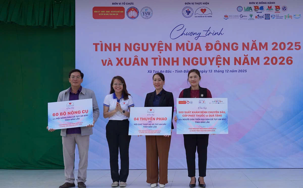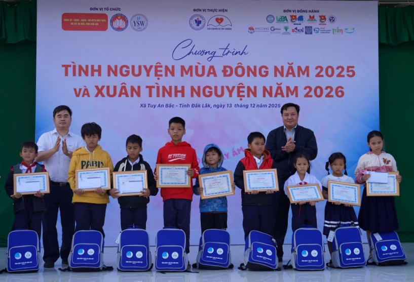 Ngày 13/12, Trung tâm Công tác Xã hội Thanh thiếu niên Việt Nam (thuộc Trung ương Hội Liên hiệp Thanh niên Việt Nam) phối hợp với Ủy ban MTTQ Việt Nam các xã Tuy An Bắc, Tuy An Tây, Tuy An Đông và Ô Loan triển khai chương trình “Tình nguyện mùa Đông 2025 và Xuân tình nguyện 2026”. Tổng giá trị các hoạt động trong đợt này hơn 5,2 tỷ đồng.