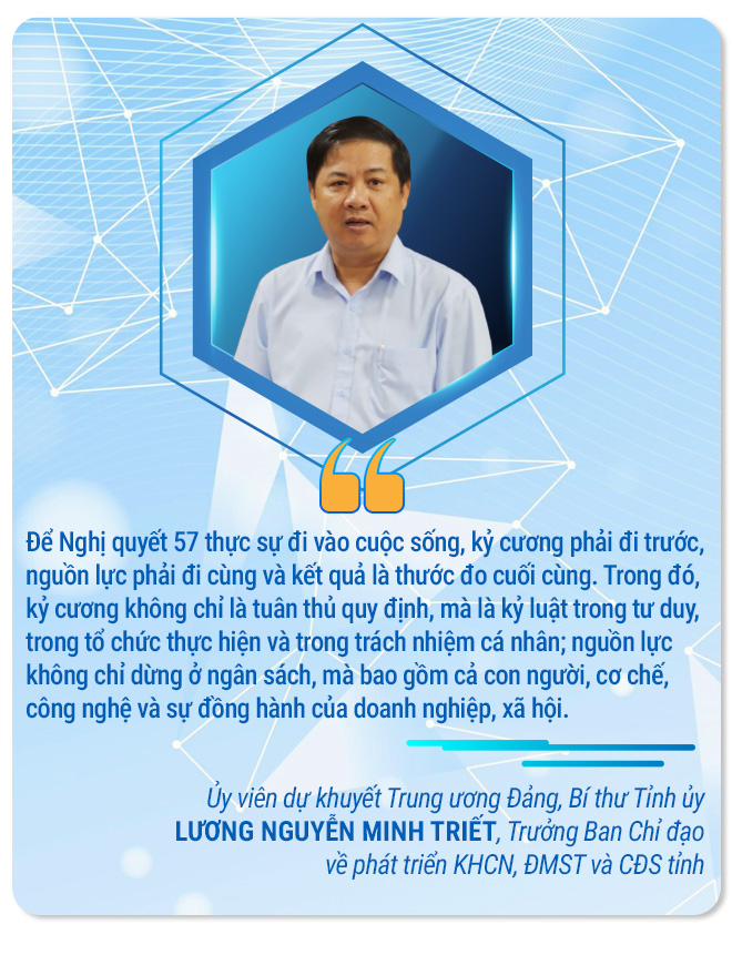 Chính từ thực tiễn ấy, Nghị quyết 57 được ban hành, mở ra định hướng phát triển có tính chiến lược: Lấy tri thức, công nghệ và đổi mới sáng tạo làm nền tảng tăng trưởng mới. Từ nhận thức đến hành động, vai trò “đầu tàu” của cấp ủy, chính quyền các cấp được thể hiện rõ nét qua cách chỉ đạo quyết liệt, xuyên suốt, gắn trách nhiệm người đứng đầu với kết quả thực hiện.
