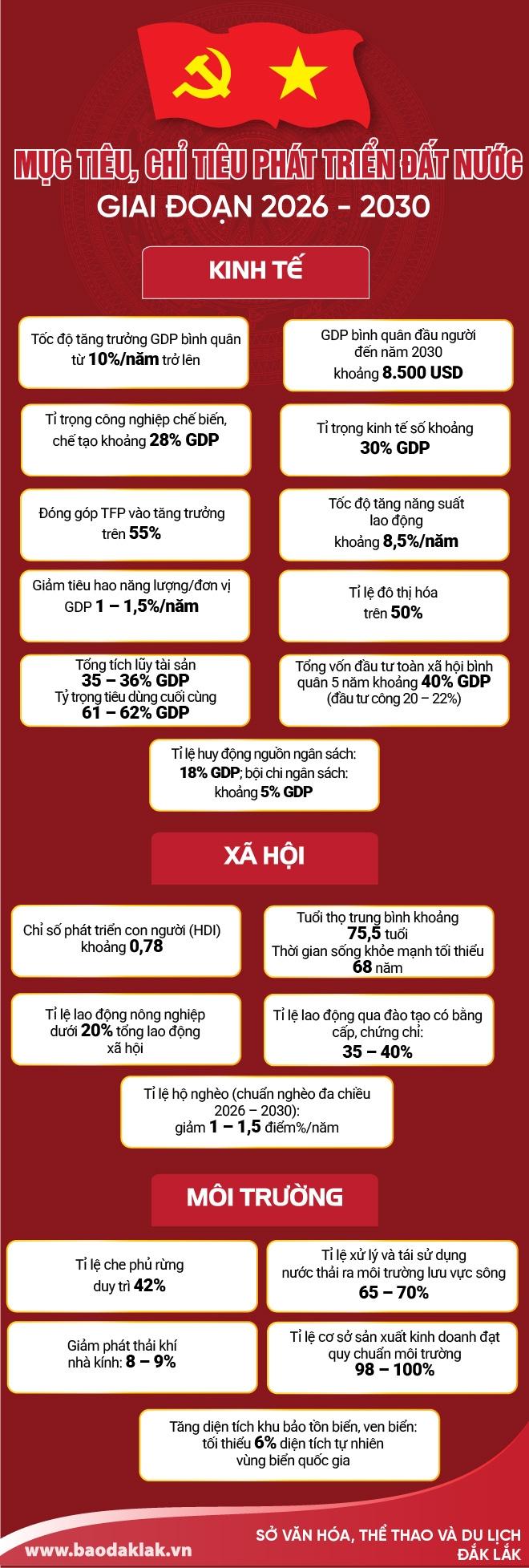(Infographic) Mục tiêu, chỉ tiêu phát triển đất nước giai đoạn 2026 - 2030