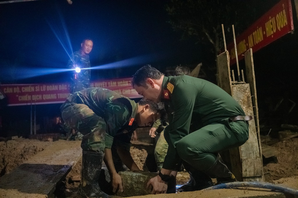 Ngay sau khi Chiến dịch Quang Trung được phát động với tinh thần thần tốc, hiệu quả và nhân văn, Binh chủng Đặc công - lực lượng tinh nhuệ của Quân đội nhân dân Việt Nam đã tiên phong cơ động về các địa bàn chịu ảnh hưởng nặng nề của mưa lũ, trực tiếp tham gia giúp nhân dân xây dựng lại nhà ở.