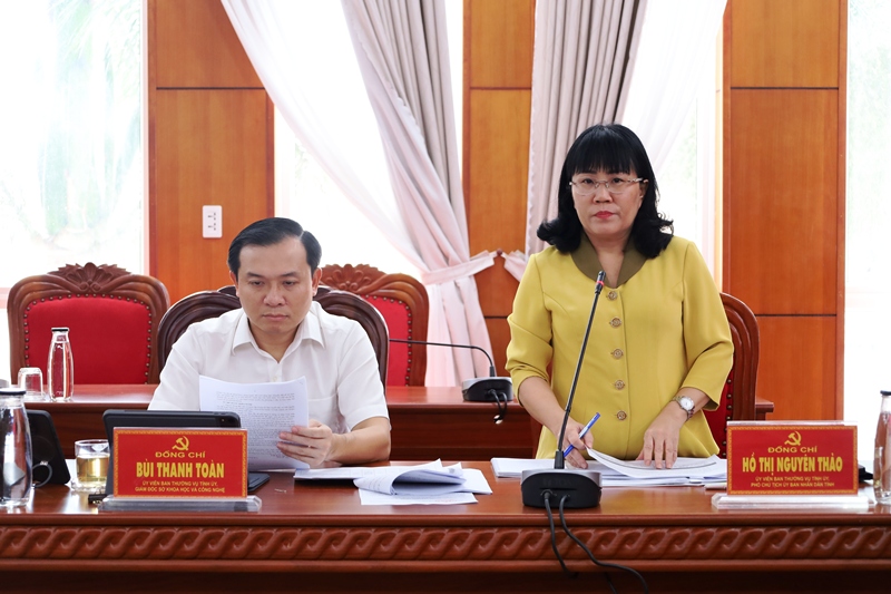 Phó Chủ tịch Thường trực UBND tỉnh Hồ Thị Nguyên Thảo thảo luận tại buổi làm việc.