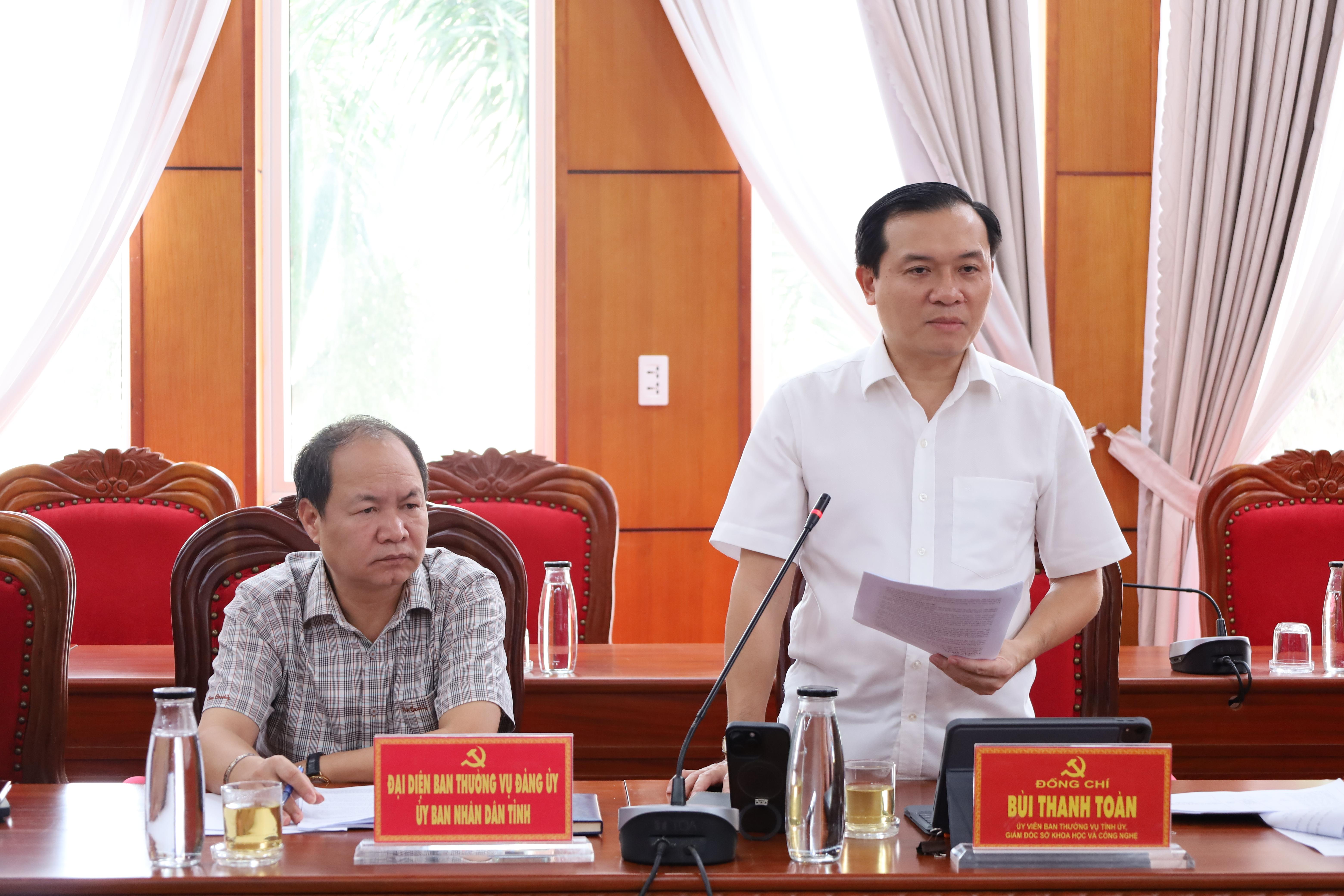 Giám đốc Sở KH-CN Bùi Thanh Toàn báo cáo kết quả thực hiện Nghị quyết số 57-NQ/TW trên địa bàn tỉnh.