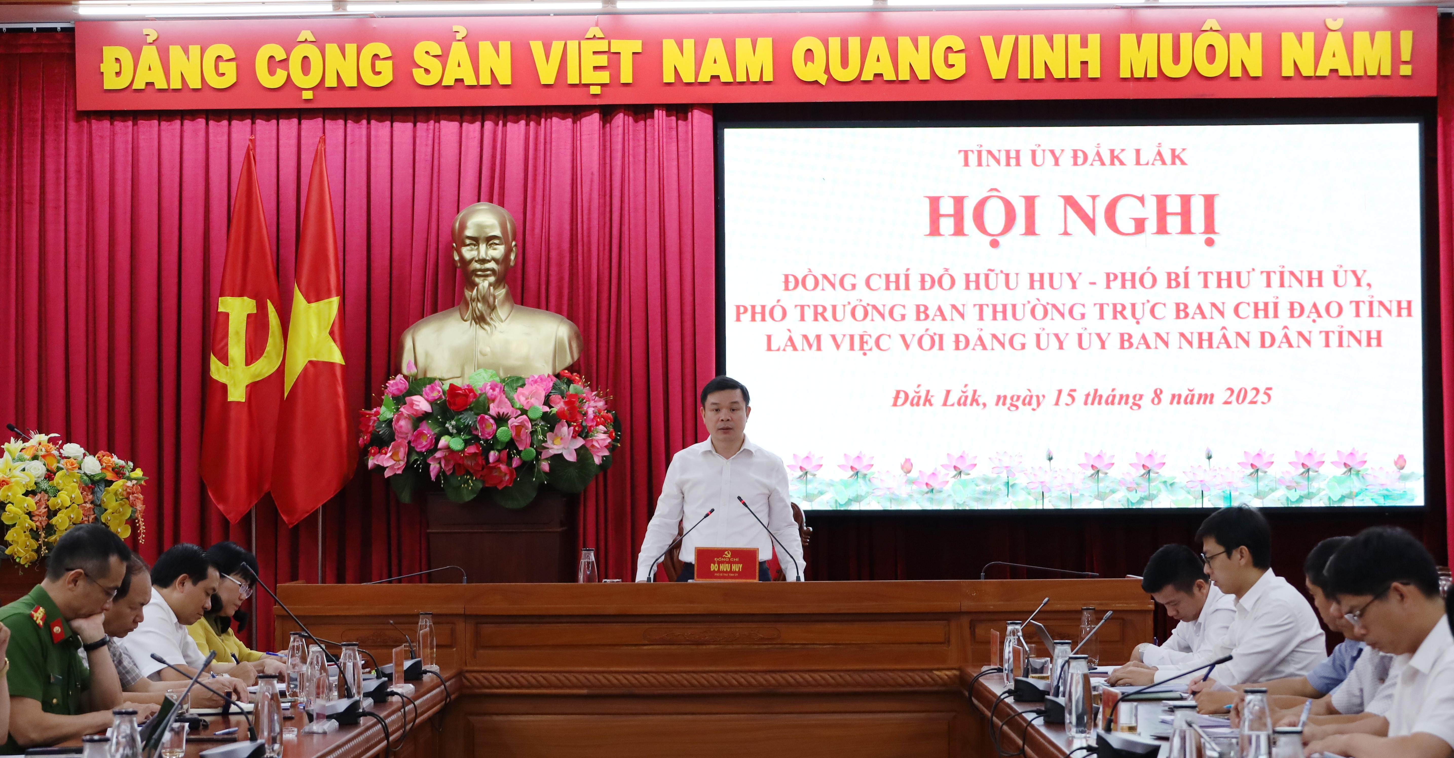 Đồng chí Đỗ Hữu Huy, Phó Bí thư Tỉnh ủy, Phó Trưởng ban Thường trực Ban Chỉ đạo phát biểu chỉ đạo tại buổi làm việc