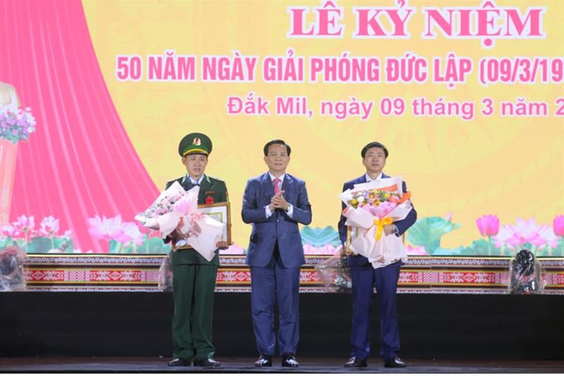 Nhân dịp này, UBND tỉnh đã tặng Bằng khen cho 02 tập thể có thành tích xuất sắc trong quá trình thi đua chào mừng Kỷ niệm 50 năm Ngày giải phóng Đức Lập (09/3/1975 - 09/3/2025): Nhân dân và cán bộ huyện Đắk Mil; Đồn Biên phòng Đắk Đam, Bộ Chỉ huy Bộ đội Biên phòng tỉnh Đắk Nông.