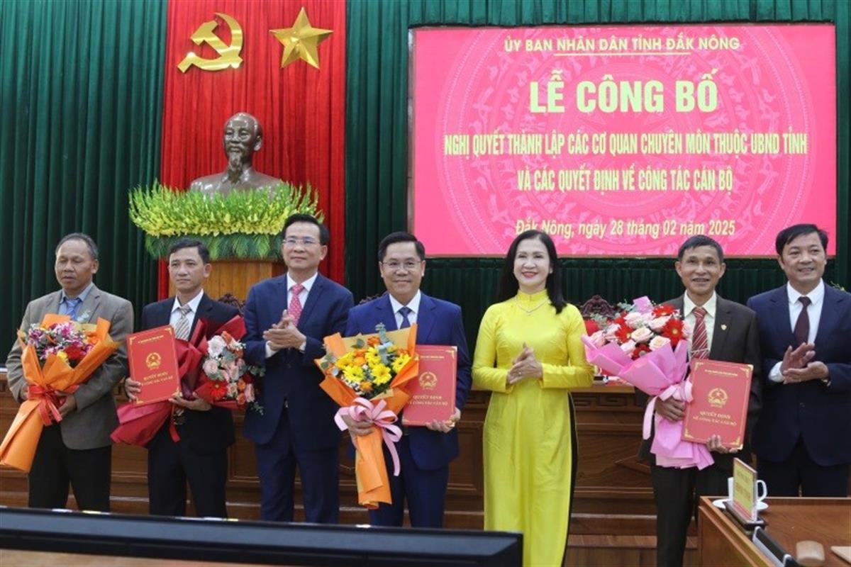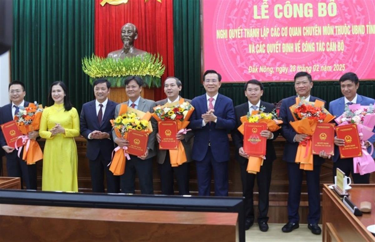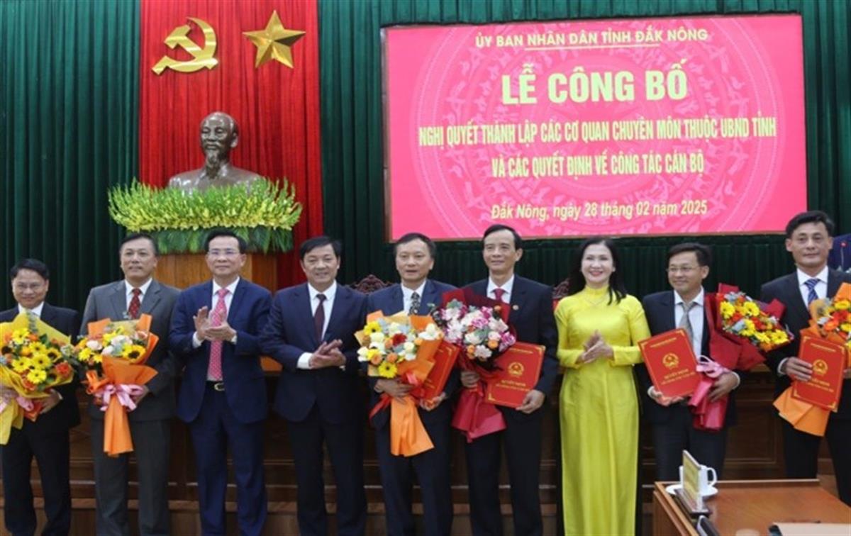 UBND tỉnh Đắk Nông công bố nghị quyết của HĐND tỉnh về sắp xếp tổ chức bộ máy và quyết định của Chủ tịch UBND tỉnh về công tác tổ chức cán bộ