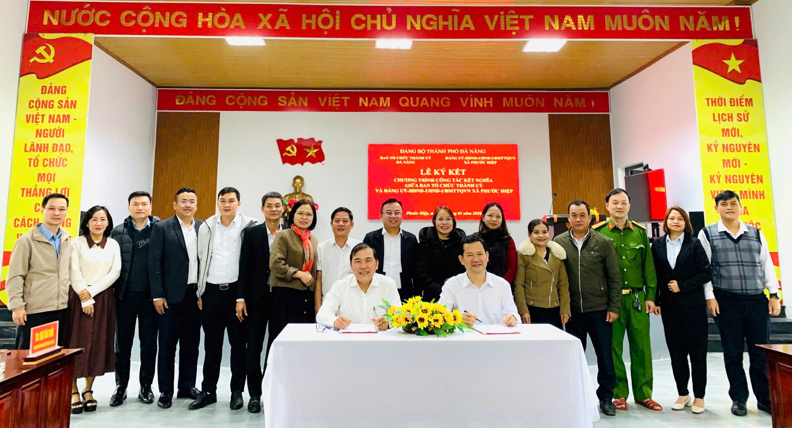(Dangbodanang.vn) - Sáng 9/1, tại xã Phước Hiệp, Ban Tổ chức Thành ủy và Đảng ủy - HĐND - UBND - Ủy ban MTTQ Việt Nam xã Phước Hiệp tổ chức lễ ký kết chương trình công tác kết nghĩa.