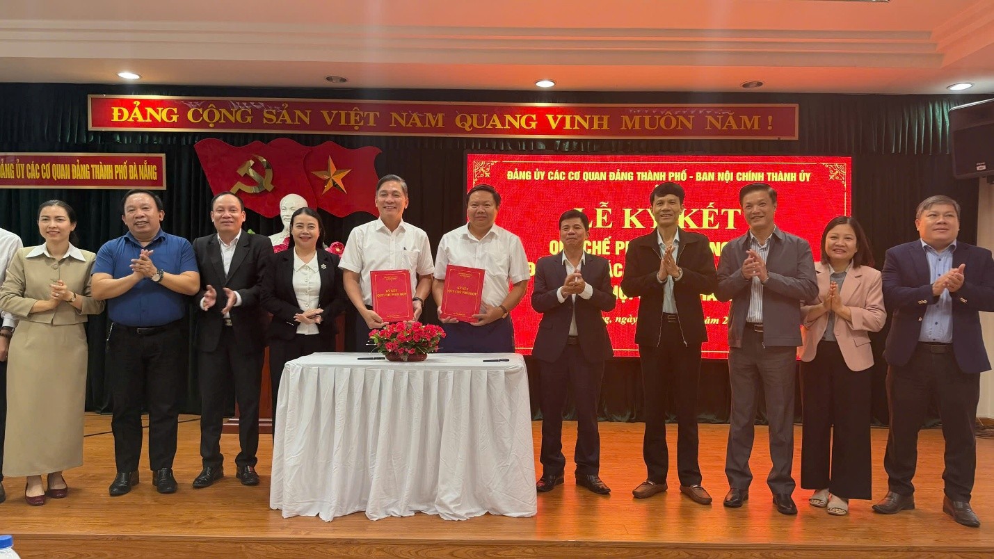 (Dangbodanang.vn) - Chiều ngày 07/01/2026, tại Hội trường Đảng ủy Các cơ quan Đảng thành phố, 02 cơ quan Ban Nội chính Thành ủy và Đảng ủy Các cơ quan Đảng thành phố đã tiến hành lễ ký kết quy chế phối hợp. Dự buổi Lễ ký kết có đồng chí Võ Công Chánh, Ủy viên Ban Thường vụ Thành ủy, Trưởng Ban Nội chính Thành ủy và các đồng chí lãnh đạo Ban và Trưởng các phòng chuyên môn; đồng chí Phạm Trường Sơn, Thành ủy viên, Phó Bí thư Đảng ủy Các cơ quan Đảng thành phố và đồng chí Thường trực Đảng ủy, các đồng chí Trưởng các cơ quan tham mưu giúp việc của Đảng ủy.