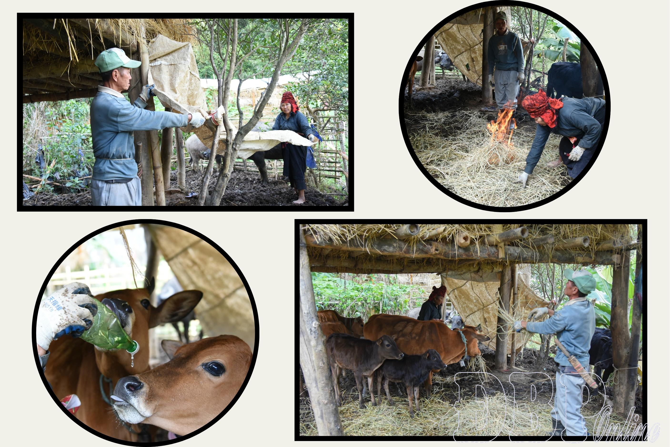 Tại bản Bua (xã Mường Phăng) nơi có nhiều hộ phát triển chăn nuôi, các biện pháp ứng phó với diễn biến thời tiết được người dân chủ động triển khai. Gia đình ông Cầm Văn Án đang duy trì nuôi 7 con bò và 2 con trâu. Ông Án cho hay, nhiều ngày qua xuất hiện mưa rét nên gia đình tuyệt đối không thả rông gia súc. Chuồng trại được che chắn kín bằng bạt, thường xuyên dọn khô, giữ sạch để hạn chế bệnh hô hấp. Sáng sớm, ông đốt lửa sưởi ấm cho vật nuôi.