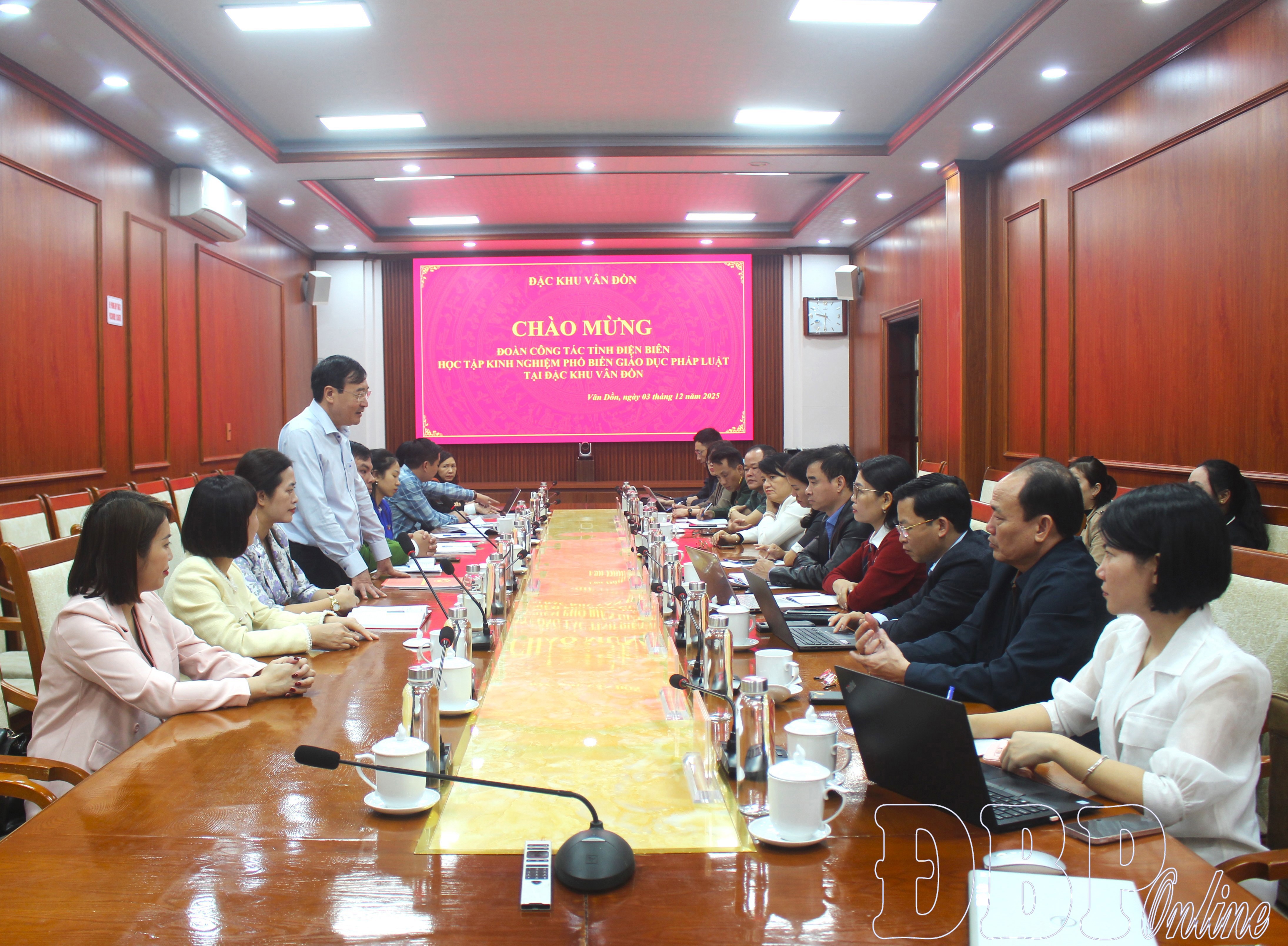 Trao đổi kinh nghiệm về các nội dung trên, đồng chí Đào Văn Vũ, Phó Chủ tịch UBND đặc khu Vân Đồn thông tin: Đặc khu Vân Đồn có 24 dân tộc anh em, trong đó, đồng bào dân tộc Sán Dìu là một trong những dân tộc có dân số đông của đặc khu. Do đó, công tác PBGDPL là một trong những nhiệm vụ quan trọng được đặc khu quan tâm, chú trọng triển khai.
