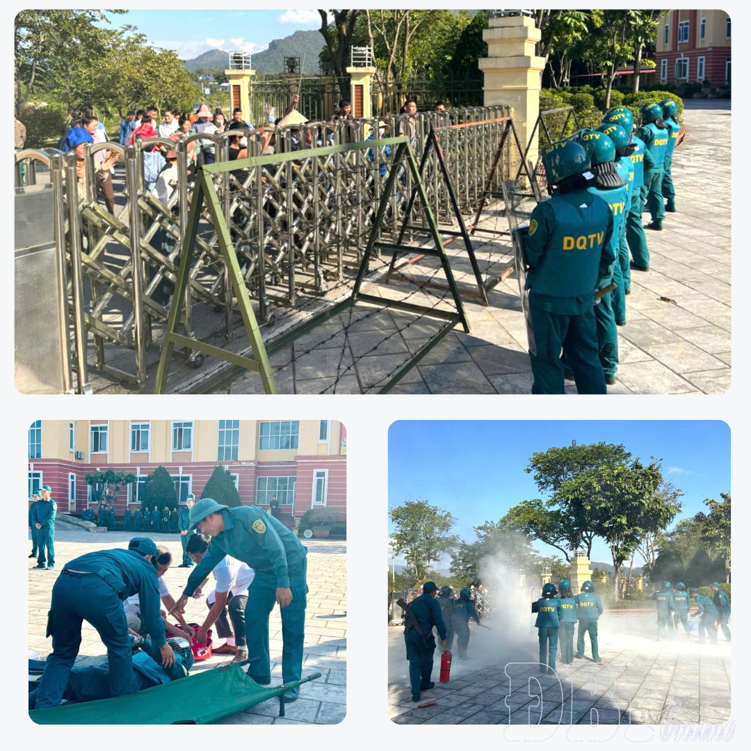 Buổi luyện tập được xây dựng với 2 phương án giả định gồm: Phương án chiến đấu bảo vệ cơ quan, đơn vị và phương án đánh chiếm lại Trung tâm Bưu điện - Văn hóa xã do Chỉ huy trưởng Ban Chỉ huy quân sự xã Mường Ảng chỉ huy trong điều kiện tình hình an ninh chính trị, trật tự an toàn xã hội trên địa bàn có diễn biến phức tạp. Quá trình thực hành, các lực lượng đã phối hợp chặt chẽ, sử dụng hiệu quả phương tiện, vũ khí, trang bị kỹ thuật; đẩy mạnh công tác tuyên truyền, bảo đảm việc tổ chức luyện tập và hiệp đồng xử lý tình huống diễn ra bài bản, khoa học.