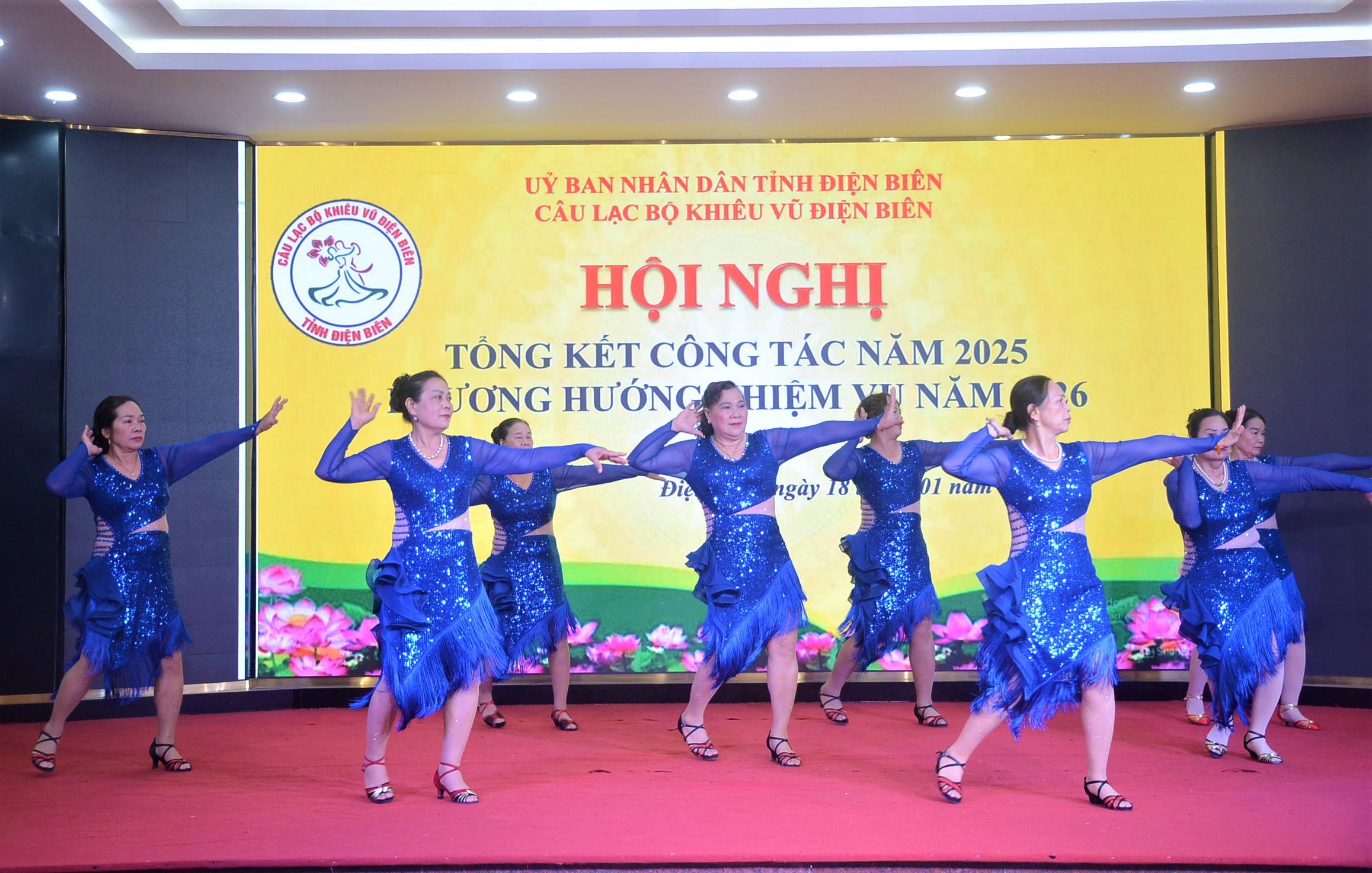CLB Khiêu vũ Điện Biên thành lập ngày 7/10/2024 theo Quyết định số 1789/QĐ-UBND của UBND tỉnh. CLB hiện có 127 thành viên, trong đó 62 hội viên chính thức. Năm 2025, CLB đã tham gia tích cực nhiều hoạt động giao lưu văn hóa, văn nghệ trong và ngoài tỉnh tổ chức, như: Festival Tinh hoa Tây Bắc – Điện Biên năm 2025; Lễ hội Ném còn 3 nước Việt Nam – Lào – Trung Quốc; biểu diễn phục vụ nhân dân và du khách tại sân tượng đài 10 buổi; biểu diễn chào xuân năm 2026 tại khu phố đi bộ Mường Thanh; tham gia Giải Khiêu vũ thể thao quần chúng quốc gia (đạt 7 huy chương vàng, 12 huy chương bạc, 5 huy chương đồng); Giải Cúp khiêu vũ thể thao toàn quốc lần thứ 3 (đạt 2 huy chương bạc, 10 huy chương đồng); tham gia các giải khu vực khác...