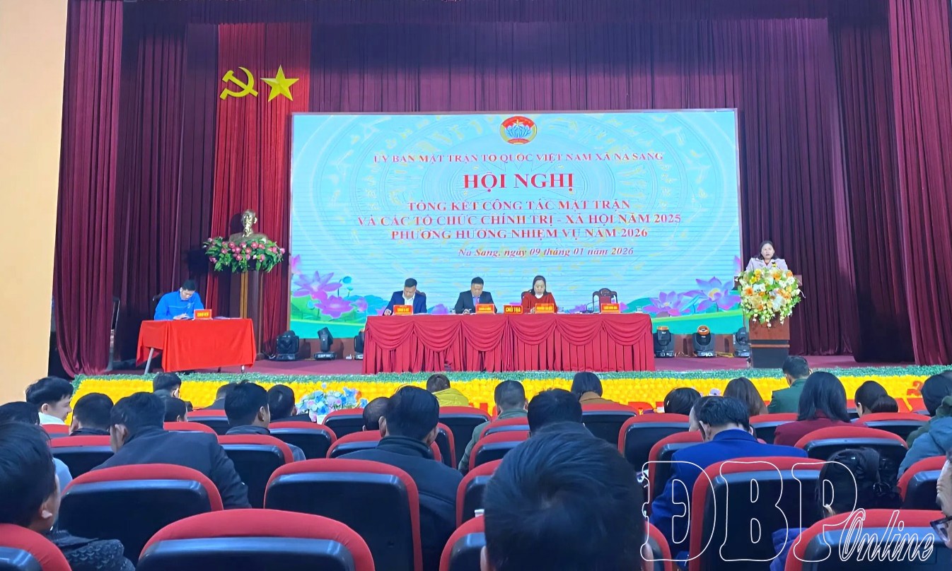 ĐBP - Ngày 9/1, Ủy ban Mặt trận Tổ quốc (MTTQ) Việt Nam xã Na Sang tổ chức tổng kết công tác Mặt trận và các tổ chức chính trị - xã hội năm 2025, triển khai phương hướng, nhiệm vụ năm 2026. Dự hội nghị có Thường trực Đảng ủy, HĐND, UBND xã; lãnh đạo các tổ chức chính trị - xã hội và trưởng ban công tác mặt trận các bản.