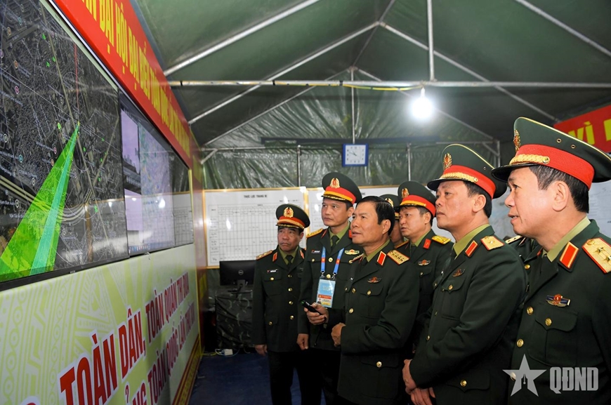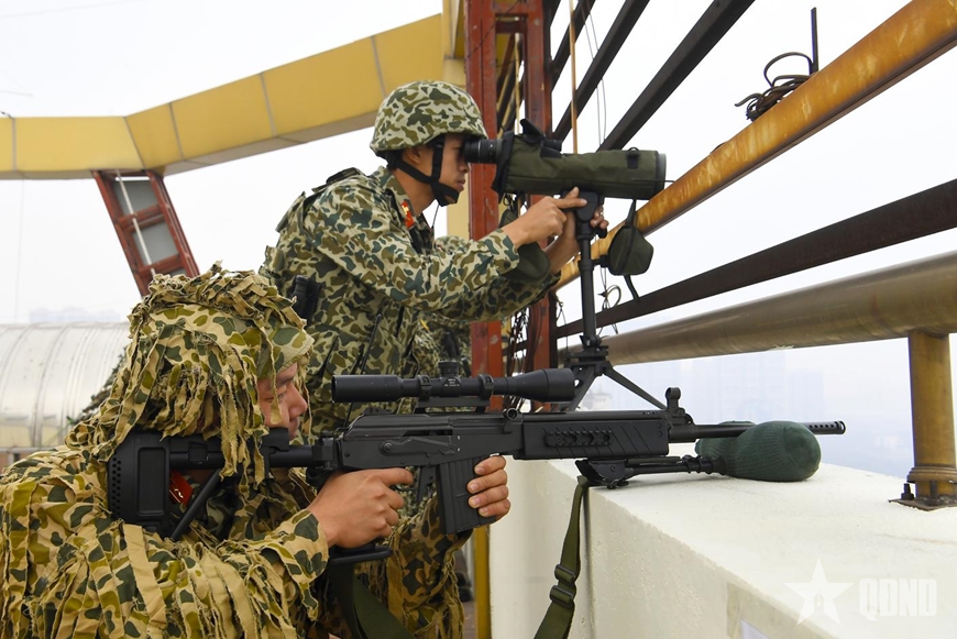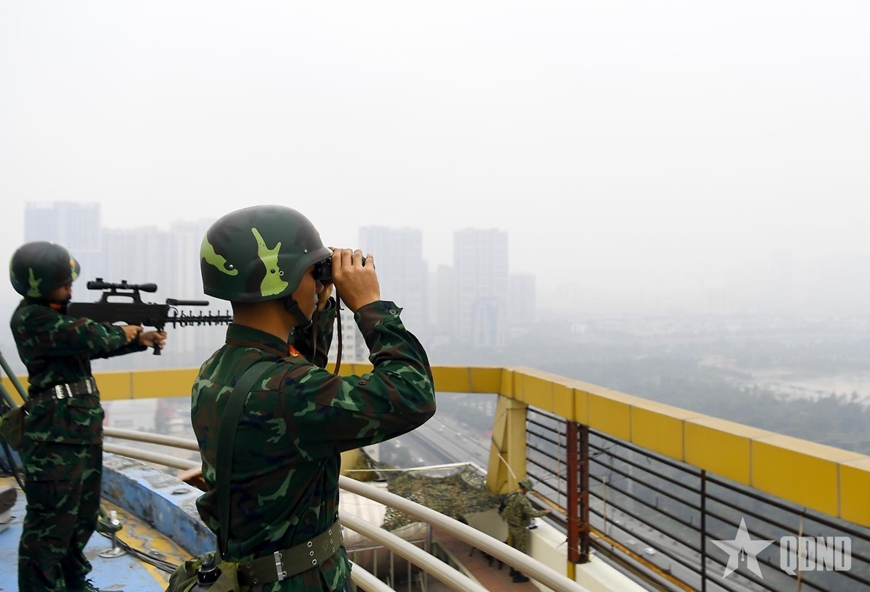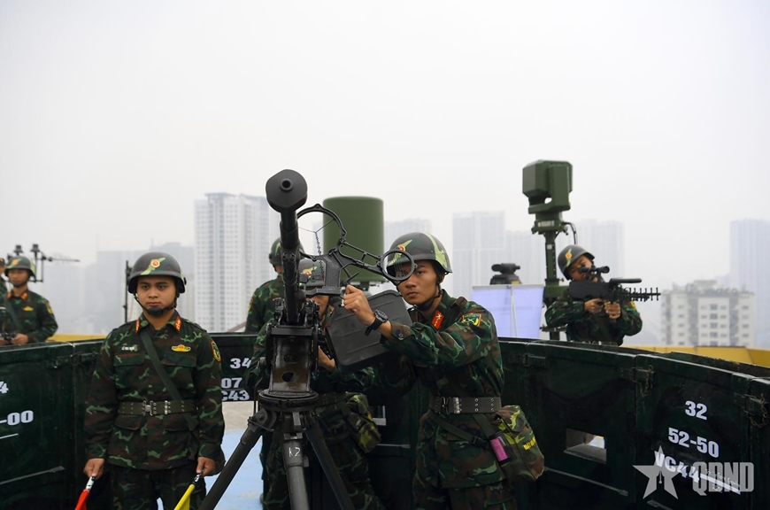 Đại tướng Nguyễn Tân Cương, Ủy viên Trung ương Đảng, Ủy viên Thường vụ Quân ủy Trung ương, Tổng Tham mưu trưởng, Thứ trưởng Bộ Quốc phòng kiểm tra vũ khí, trang bị của Lữ đoàn Đặc công Biệt động 1 (Binh chủng Đặc công).Đại tướng Nguyễn Tân Cương, Ủy viên Trung ương Đảng, Ủy viên Thường vụ Quân ủy Trung ương, Tổng Tham mưu trưởng, Thứ trưởng Bộ Quốc phòng kiểm tra công tác trực sẵn sàng chiến đấu tại Sở chỉ huy Tác chiến điện tử do Lữ đoàn 84 (Cục Tác chiến điện tử, Bộ Tổng Tham mưu) đảm nhiệm.Khẩu đội 12,7mm và tổ chống UAV luyện tập phương án chế áp, tiêu diệt mục tiêu bay không xác định.Lực lượng Kiểm soát quân sự của Tiểu đoàn 103, Bộ tư lệnh Thủ đô Hà Nội phối hợp chặt chẽ với các lực lượng bảo đảm dẫn đoàn, phân luồng, điều tiết giao thông.Đài quan sát phóng xạ hóa học của Lữ đoàn 86 (Binh chủng Hóa học) với các thiết bị quan trắc hiện đại, bảo đảm phát hiện, xử lý các đám mây, bụi phóng xạ, hóa học từ sớm.Tổ bắn tỉa thuộc Đội 7 Đặc công Biệt động chống khủng bố, Lữ đoàn Đặc công Biệt động 1 (Binh chủng Đặc công) quan sát, tìm kiếm, phát hiện các mục tiêu khả nghi.Đài quan sát, chỉ huy trận địa pháo phòng không tự hành tăng cường quan sát, phát hiện mục tiêu, thường xuyên giữ thông tin liên lạc với cấp trên và các đơn vị bạn.Nhân viên tổng đài Lữ đoàn 205 (Binh chủng Thông tin liên lạc) trực bảo đảm thông tin liên lạc, truyền hình phục vụ Đại hội XIV của Đảng.Các tổ, vọng quan sát luôn tổ chức canh, trực 24/24 giờ, đặc biệt là các nhiệm vụ phòng, chống phương tiện bay không người lái.Nhân viên tổng đài Lữ đoàn 205 (Binh chủng Thông tin liên lạc) trực bảo đảm thông tin liên lạc, truyền hình phục vụ Đại hội XIV của Đảng.