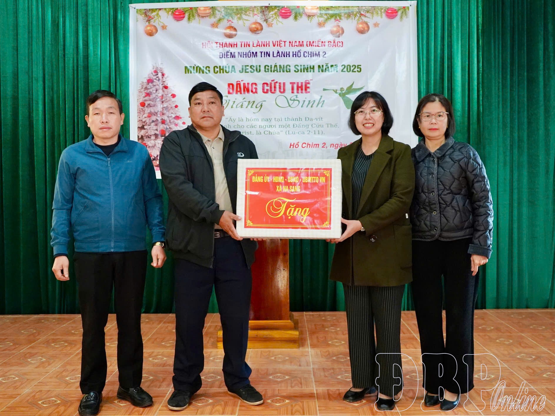 Nhân dịp này, Đảng ủy - HĐND - UBND - Ủy ban MTTQ Việt Nam xã trao 34 suất quà cho các điểm nhóm và chức sắc, chức việc tôn giáo, thể hiện sự quan tâm, chăm lo của cấp ủy, chính quyền đối với đồng bào có đạo.