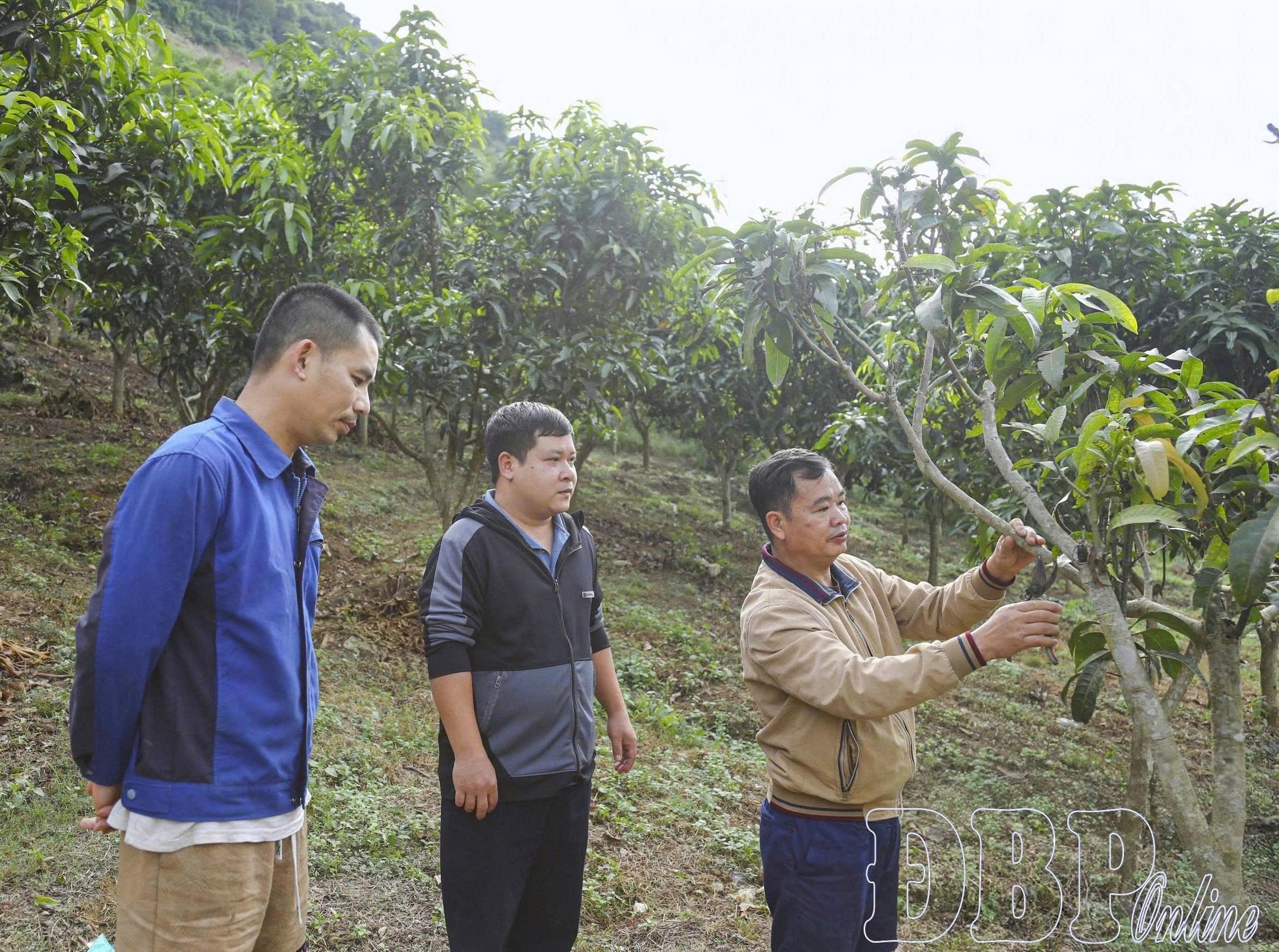 Cán bộ xã Pú Nhung hướng dẫn kỹ thuật chăm sóc cây ăn quả để nâng cao chất lượng sản phẩm.