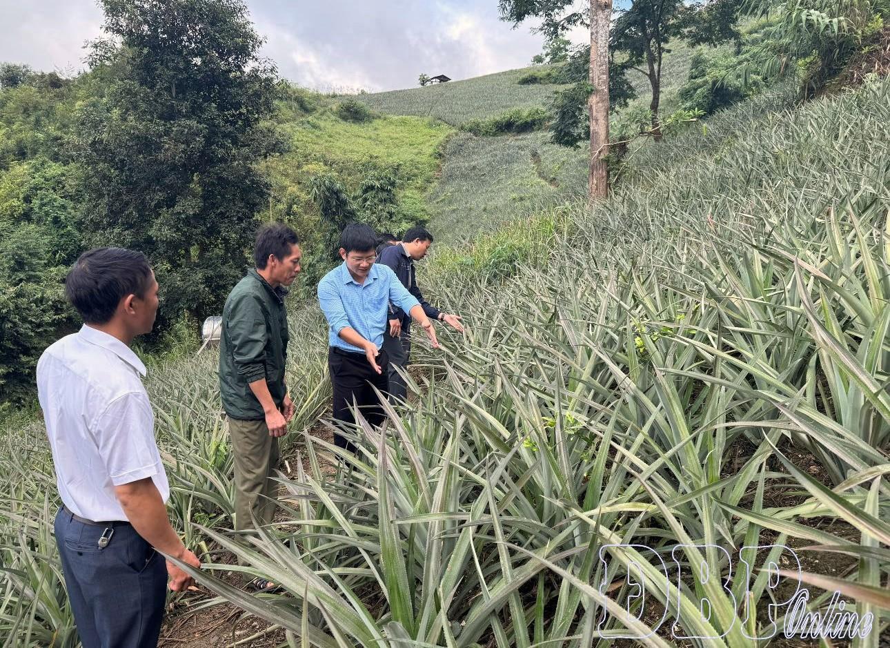 Lãnh đạo xã Na Sang kiểm tra vùng trồng dứa của người dân trên địa bàn.