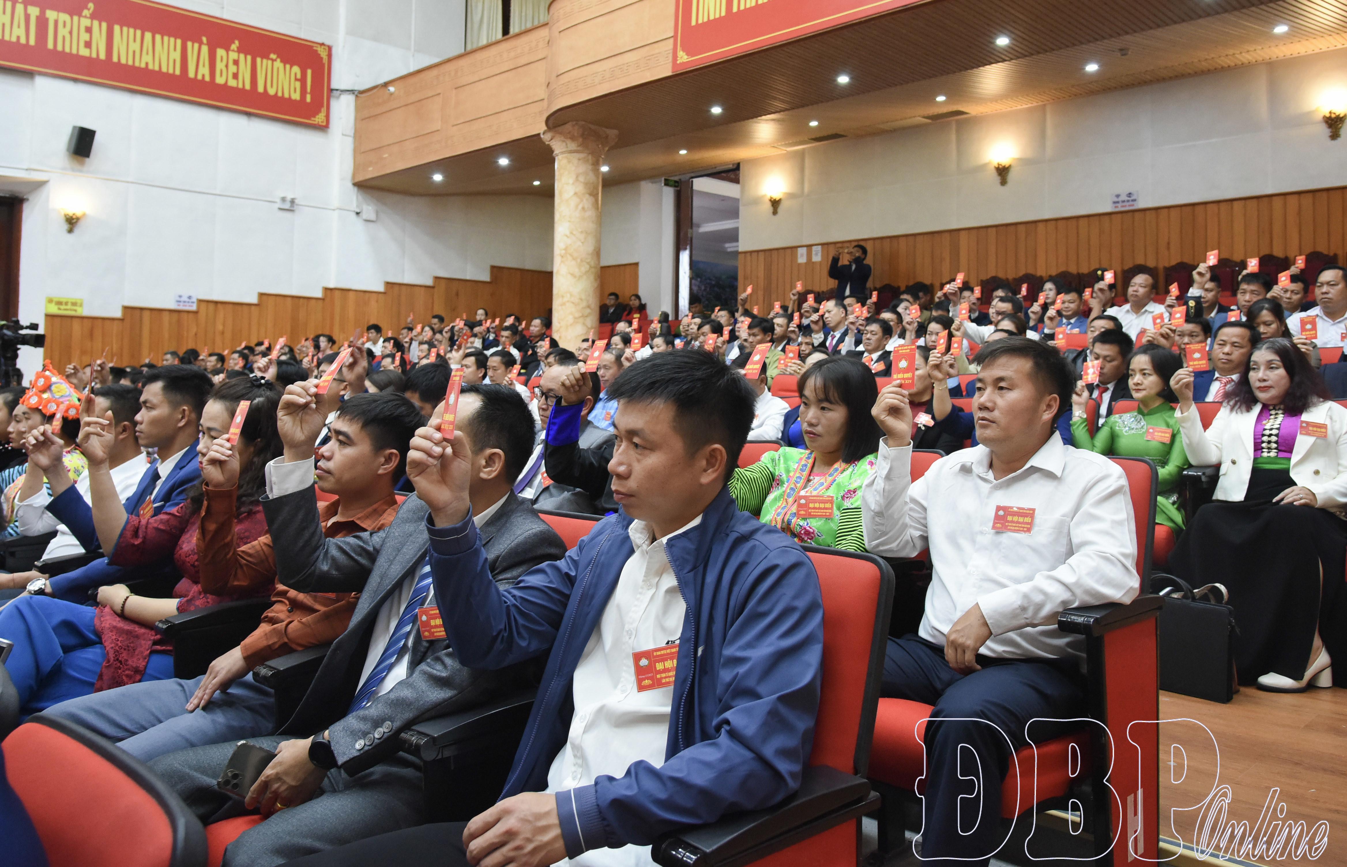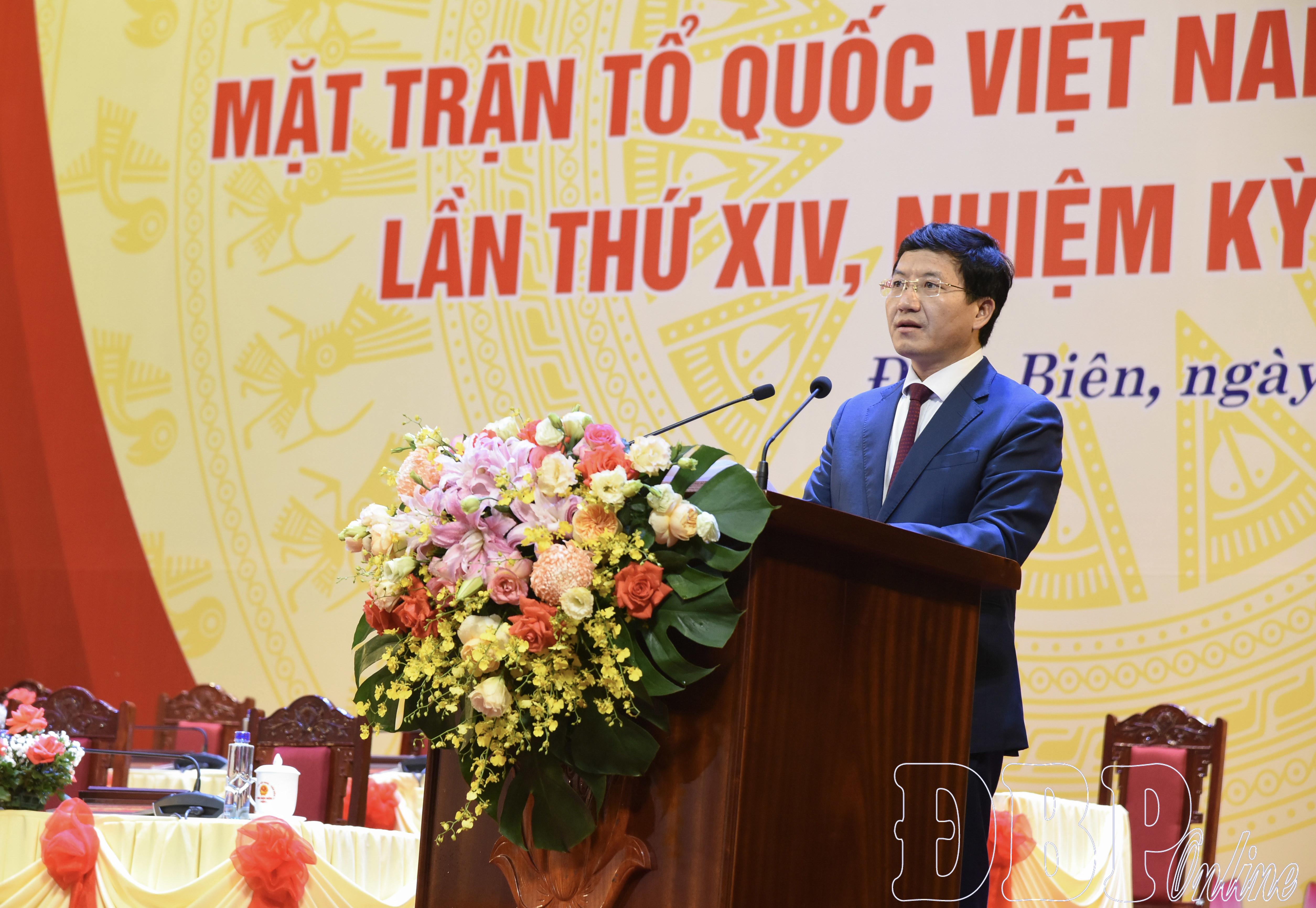 Toàn cảnh phiên làm việc.Tại phiên thứ nhất, Đại hội đã hiệp thương cử Đoàn Chủ tịch Đại hội gồm 15 vị; Đoàn Thư ký đại hội gồm 2 vị; thông qua Chương trình và Quy chế đại hội. Đại hội cũng nghe Báo cáo tổng hợp ý kiến góp ý vào dự thảo Văn kiện Đại hội đại biểu MTTQ Việt Nam tỉnh Điện Biên lần thứ 14, nhiệm kỳ 2025 - 2030; góp ý vào dự thảo Văn kiện Đại hội đại biểu toàn quốc MTTQ Việt Nam lần thứ 11; góp ý sửa đổi, bổ sung Điều lệ MTTQ Việt Nam khóa 10.