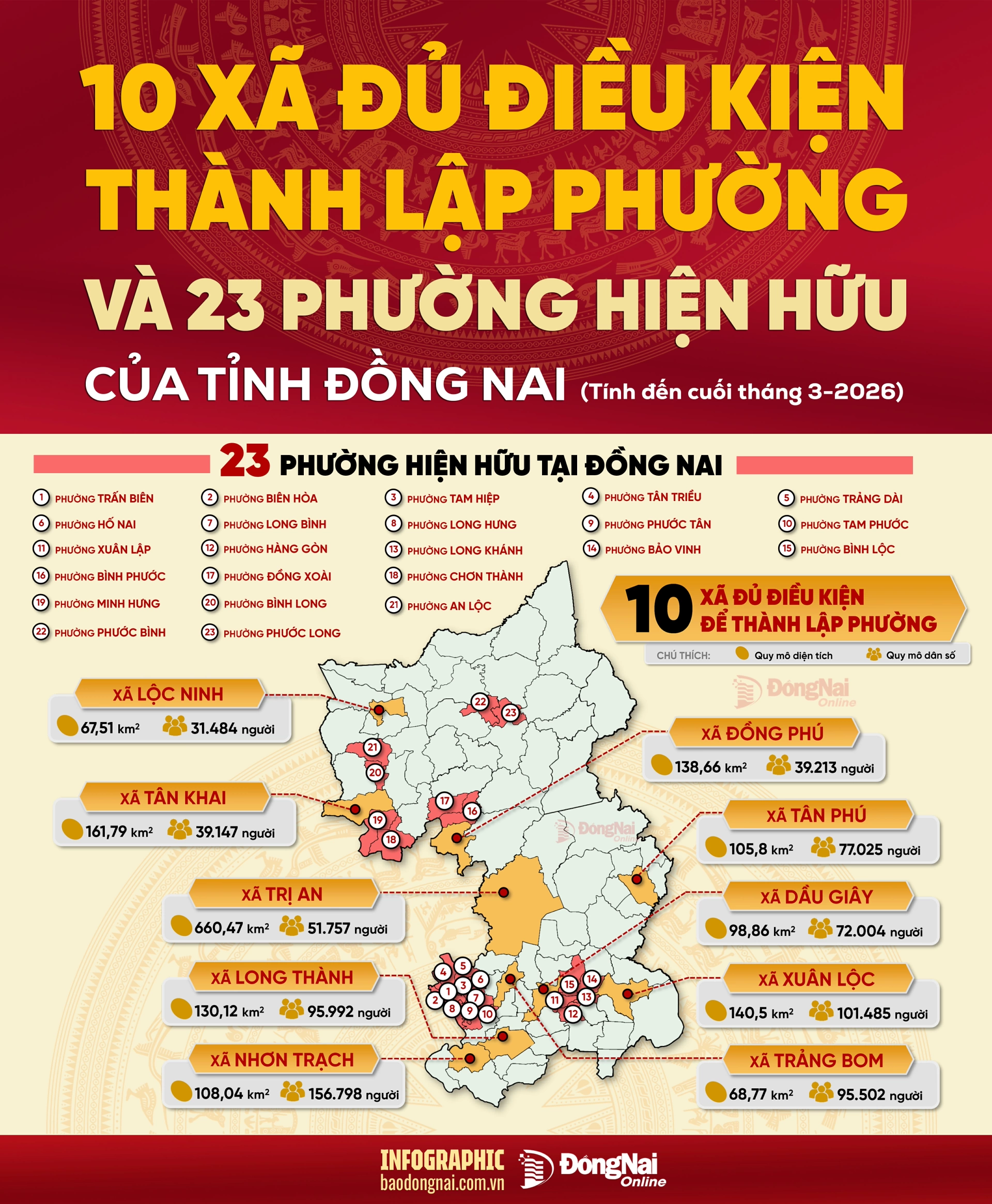 [Infographic] 10 xã sắp thành lập phường của Đồng Nai có quy mô dân số, diện tích ra sao?