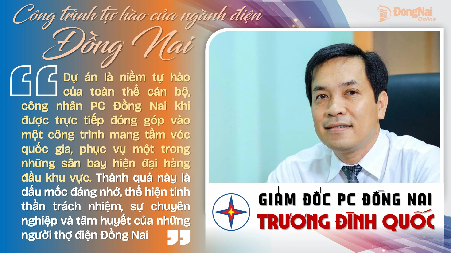 Giám đốc PC Đồng Nai Trương Đình Quốc chia sẻ: Việc hoàn thành Trạm 110kV Sân bay Long Thành không chỉ đánh dấu sự kết thúc của một dự án điện quy mô lớn, mà còn mang ý nghĩa đặc biệt đối với tập thể cán bộ, kỹ sư, công nhân ngành điện Đồng Nai. Đây là công trình đòi hỏi tiêu chuẩn kỹ thuật khắt khe, yêu cầu an toàn nghiêm ngặt và tiến độ gấp rút, nhưng đã được đội ngũ thi công hoàn thành đồng bộ, hiện đại, đáp ứng đầy đủ các yêu cầu của một dự án trọng điểm quốc gia.