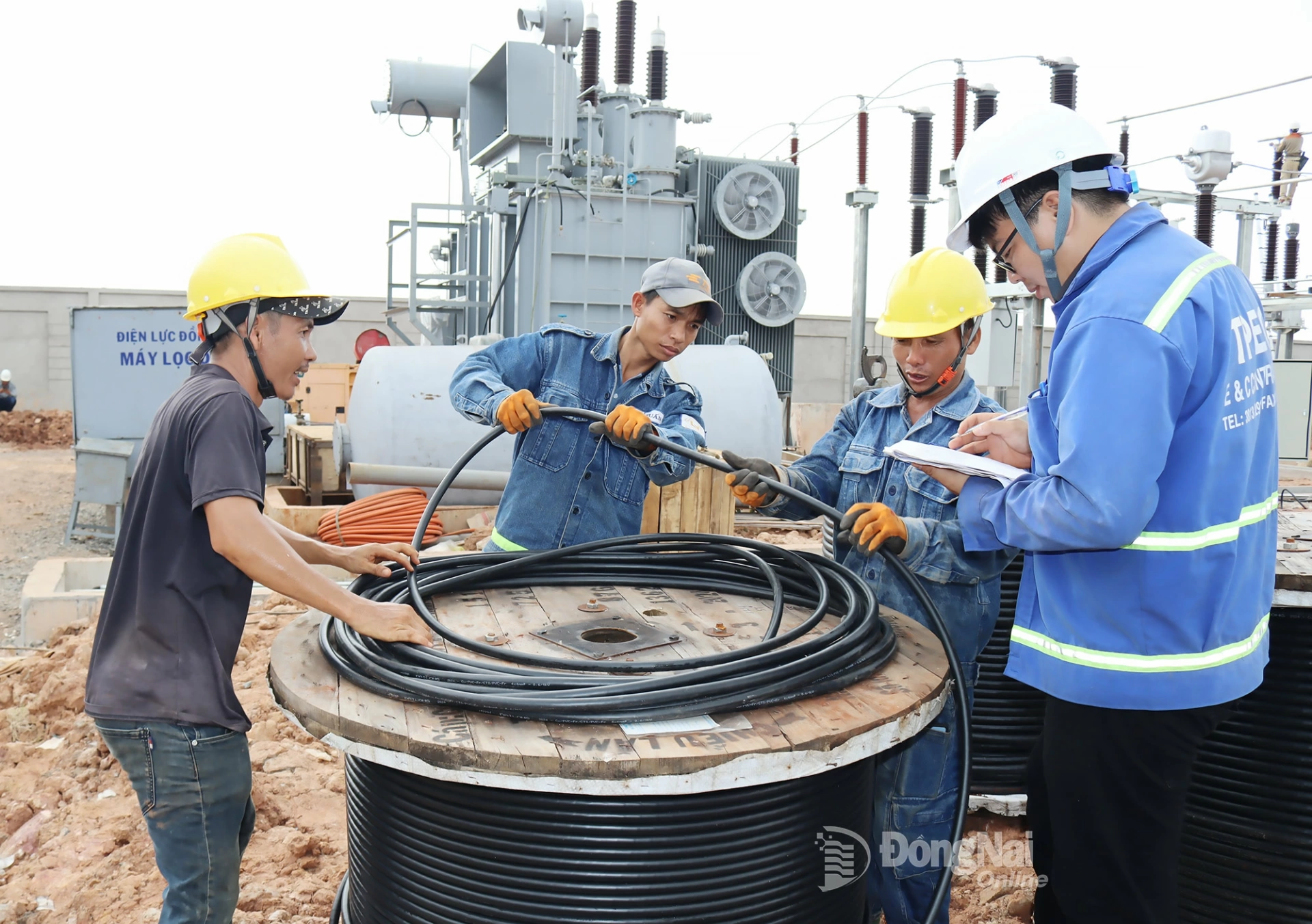 | Công nhân Công ty Điện lực Đồng Nai kiểm tra kỹ thuật trước thời điểm đóng điện công trình cung cấp điện cho sân bay Long Thành (giai đoạn 2). |