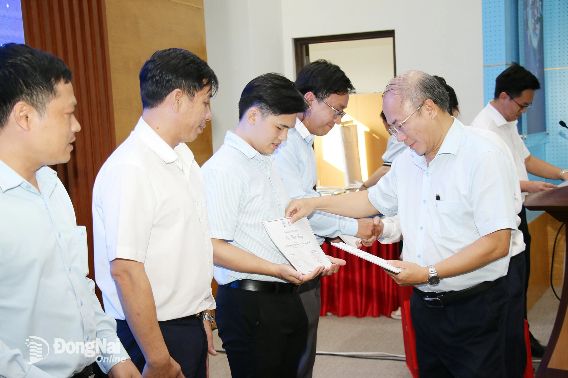 | Phó Giám đốc Sở Khoa học và Công nghệ tỉnh Đồng Nai Nguyễn Minh Quang trao giấy chứng nhận cho các học viên hoàn thành lớp bồi dưỡng. Ảnh: Hải Quân |