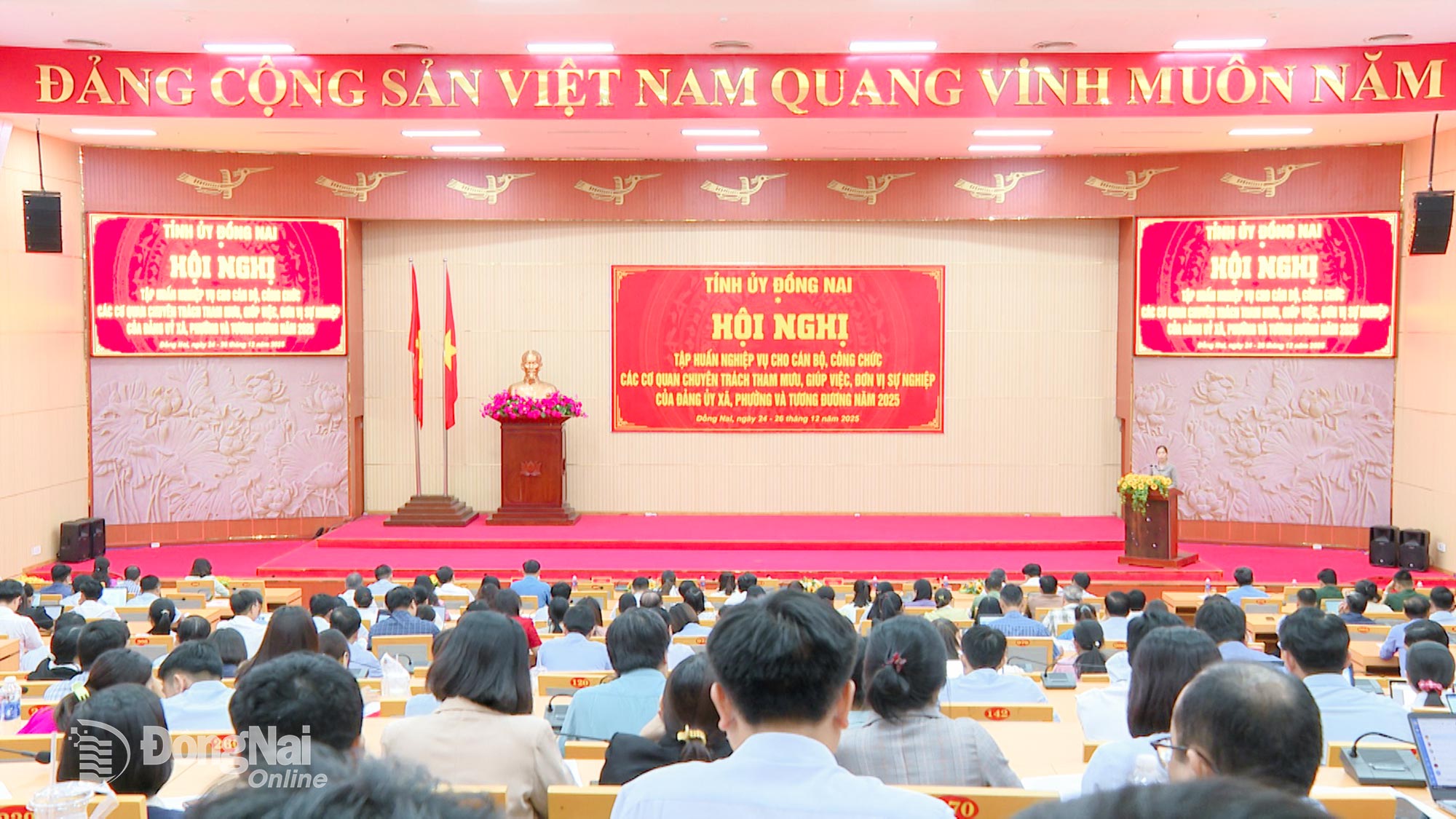 (ĐN)- Sáng 24-12, Tỉnh ủy Đồng Nai tổ chức Hội nghị tập huấn nghiệp vụ cho cán bộ, công chức các cơ quan chuyên trách tham mưu, giúp việc, đơn vị sự nghiệp của Đảng ủy xã, phường và tương đương năm 2025. Đồng chí Thái Bảo, Phó Bí thư Tỉnh ủy, Trưởng ban Tổ chức Tỉnh ủy dự và phát biểu khai mạc hội nghị.