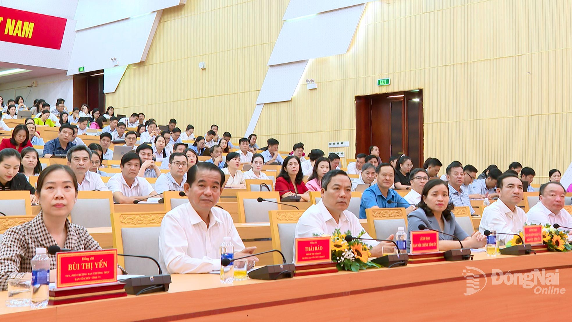 | Đồng chí Thái Bảo, Phó Bí thư Tỉnh ủy, Trưởng ban Tổ chức Tỉnh ủy Đồng Nai cùng các đại biểu tham dự khai mạc hội nghị. Ảnh: Thanh Lâm |