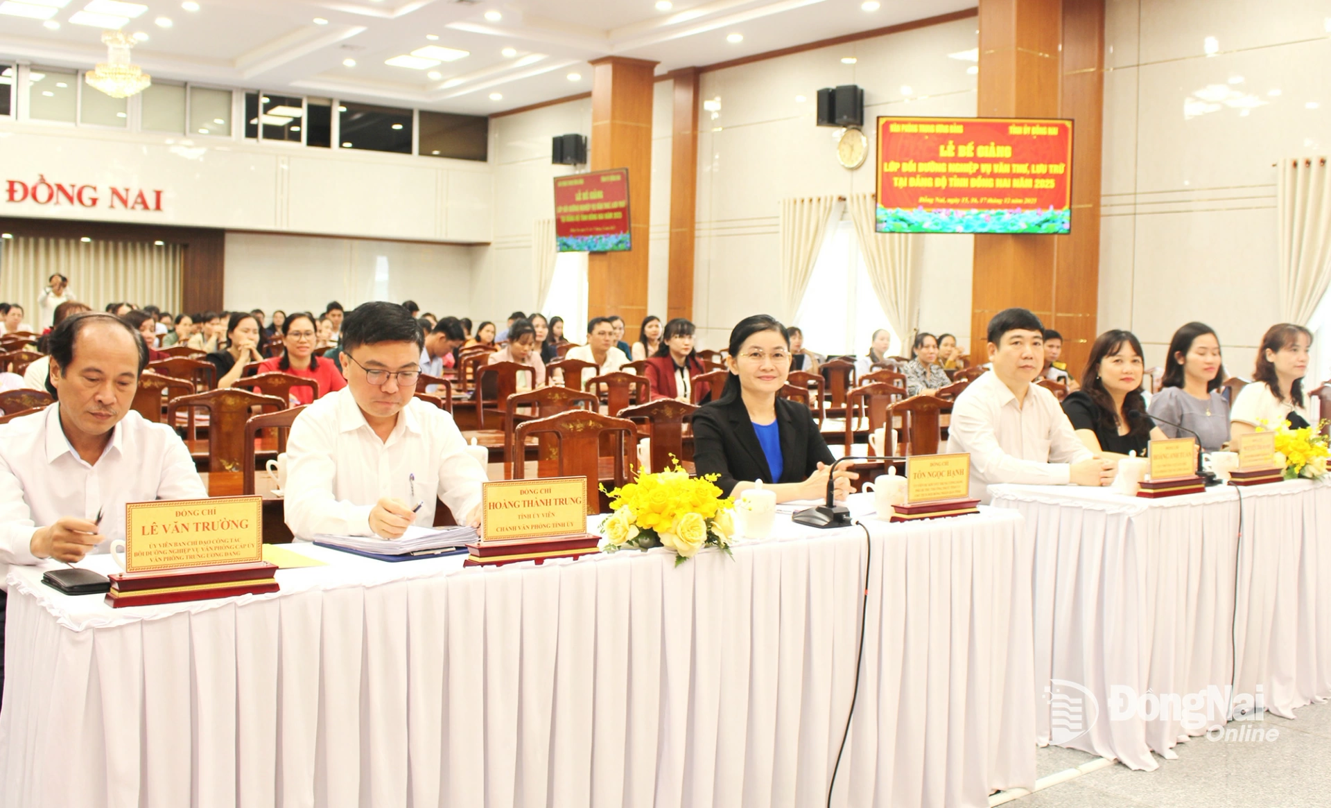 Dự buổi lễ có các đồng chí: Tôn Ngọc Hạnh, Ủy viên dự khuyết Trung ương Đảng, Phó Bí thư Thường trực Tỉnh ủy, Chủ tịch HĐND tỉnh Đồng Nai; Hoàng Anh Tuấn, Cục trưởng Cục Lưu trữ, Văn phòng Trung ương Đảng; Lê Văn Trường, Ủy viên Ban Chỉ đạo công tác bồi dưỡng nghiệp vụ Văn phòng cấp ủy, Văn phòng Trung ương Đảng.