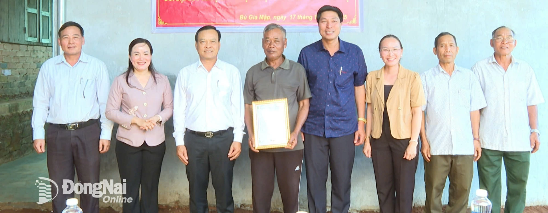 | Trao quyết định bàn giao nhà đại đoàn kết cho ông Điểu Lách, ở thôn Bù Rên, xã Bù Gia Mập. Ảnh: Nguyễn Tấn |