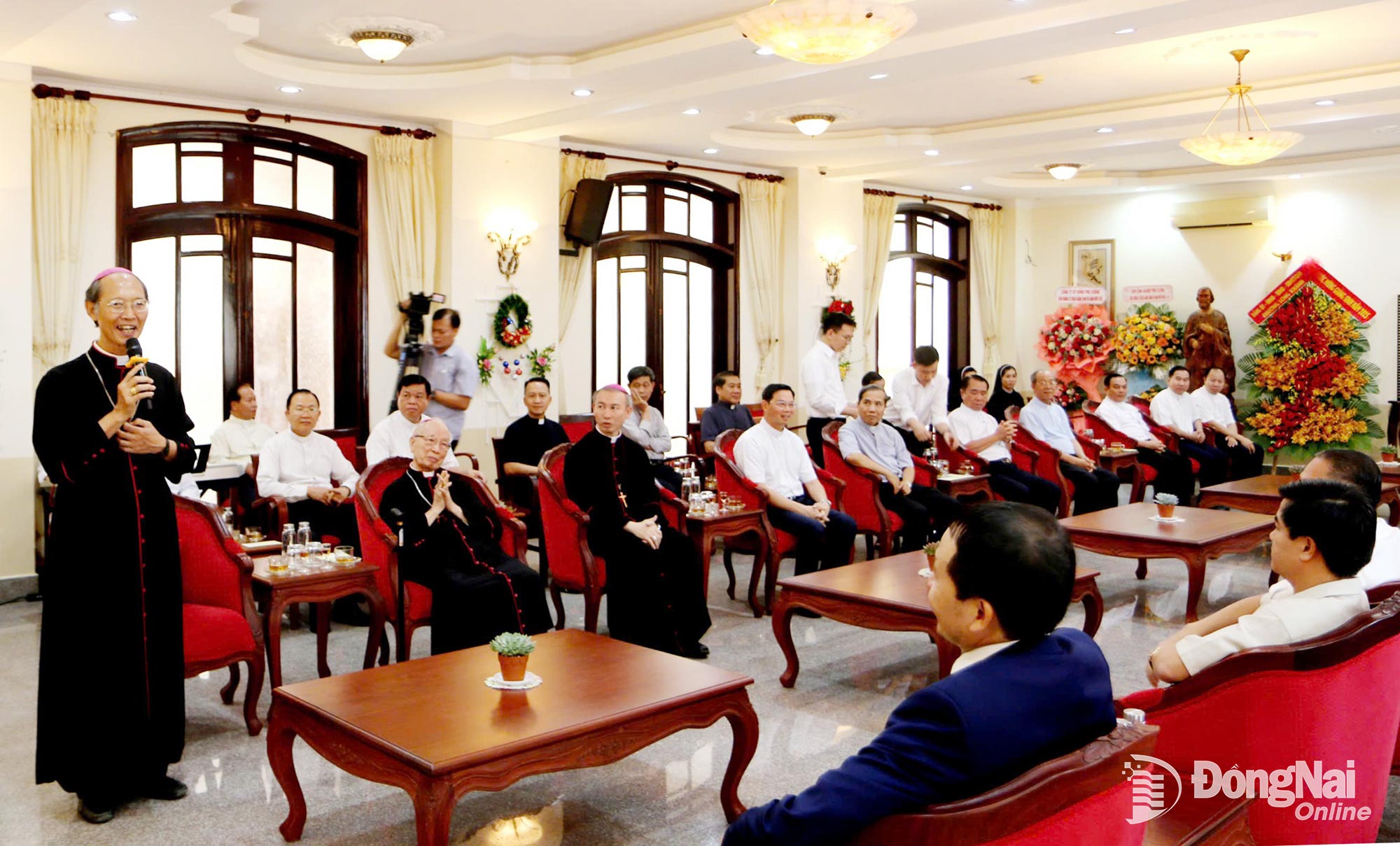 | Giám mục Chính tòa Giáo phận Xuân Lộc Đỗ Văn Ngân phát biểu đáp từ đoàn công tác của tỉnh Đồng Nai đến thăm, chúc mừng Giáng sinh năm 2025. Ảnh: Văn Truyên |