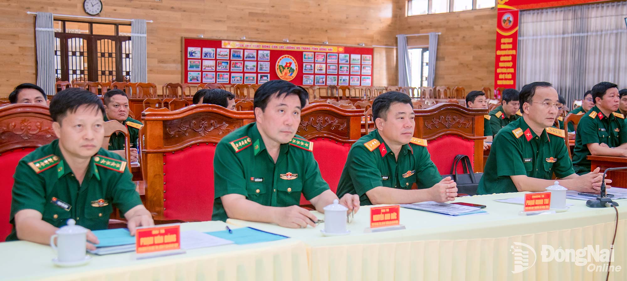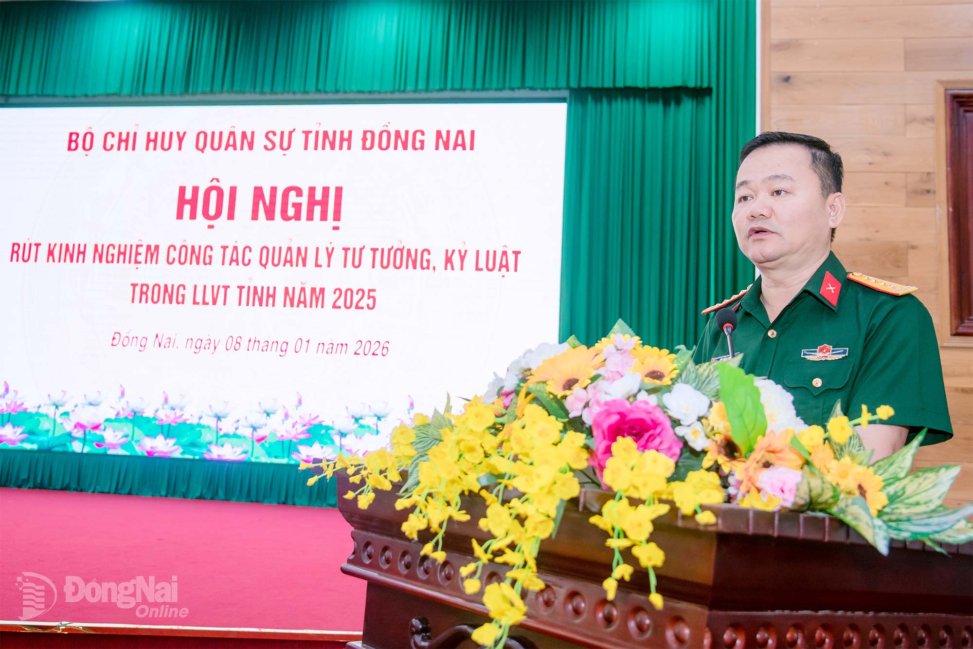 | Đại tá Bùi Đăng Ninh, Tỉnh ủy viên, Chính ủy Bộ Chỉ huy Quân sự tỉnh Đồng Nai phát biểu tại hội nghị. Ảnh: Văn Chung |