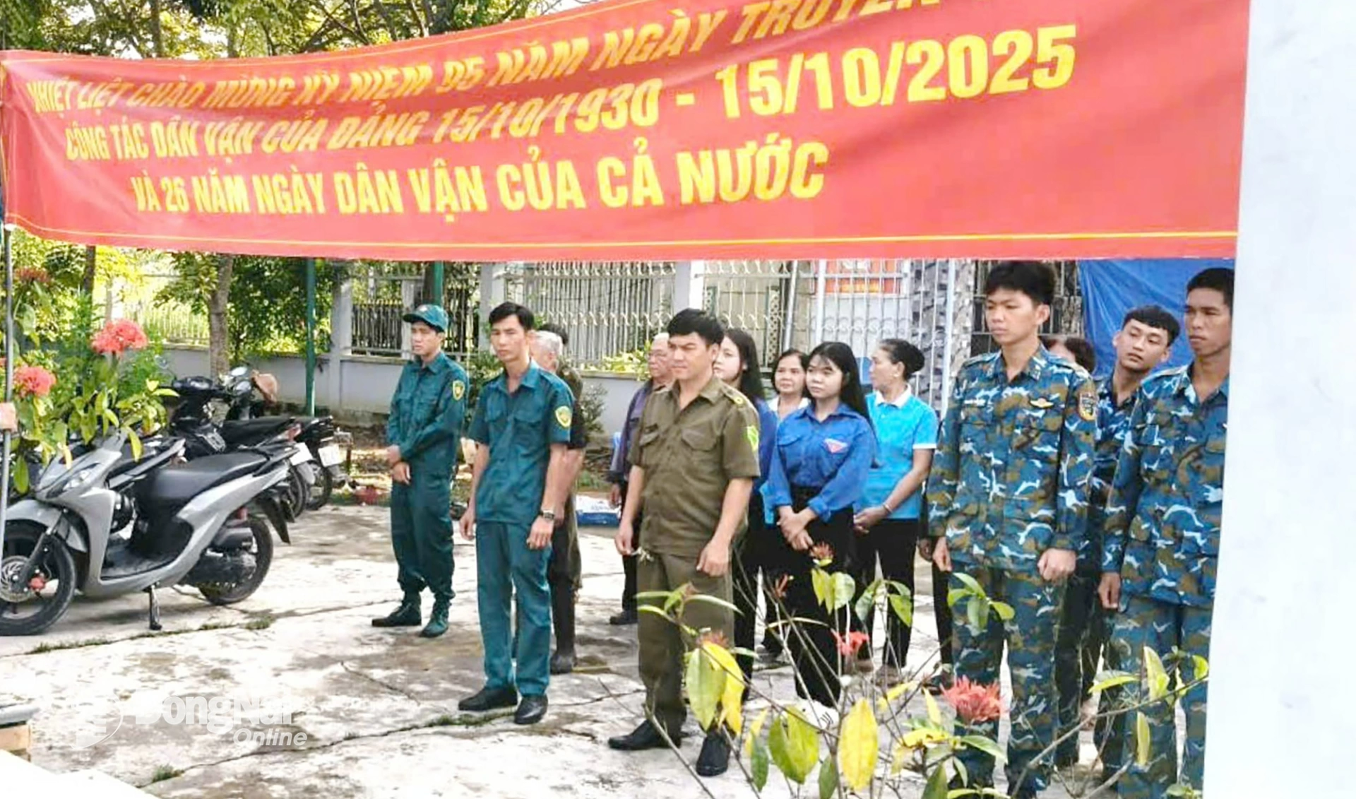 | Lãnh đạo xã Đại Phước và các đơn vị phối hợp làm dân vận trong lễ ra quân. Ảnh: ĐVCC |
