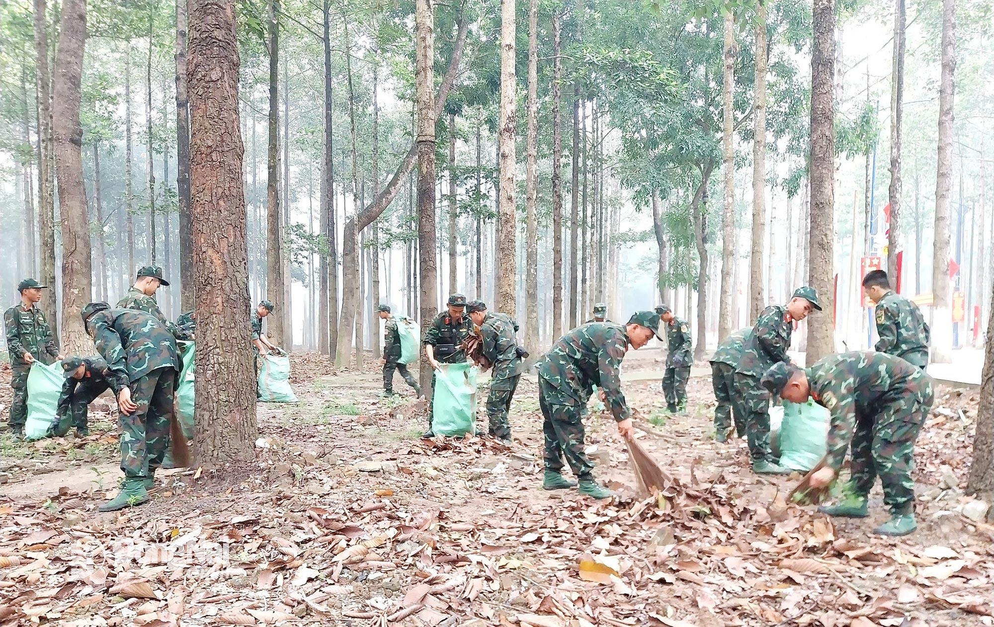 | Cán bộ, chiến sĩ Lữ đoàn 96, Bộ Tư lệnh Pháo binh tên lửa giúp dân khắc phục thiên tai trong chương trình dân vận tại xã Long Thành. Ảnh: ĐVCC |
