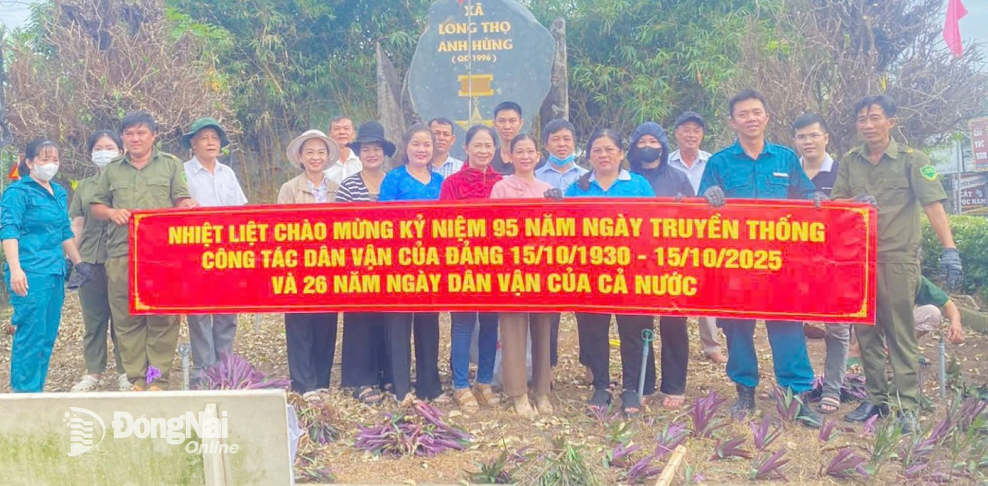 | Cán bộ, nhân dân xã Thiện Hưng và các đơn vị phối hợp làm dân vận chào mừng thành công Đại hội Đại biểu Đảng bộ tỉnh Đồng Nai lần thứ I, nhiệm kỳ 2025-2030 và chào mừng Ngày truyền thống công tác dân vận. Ảnh: Như Tình |