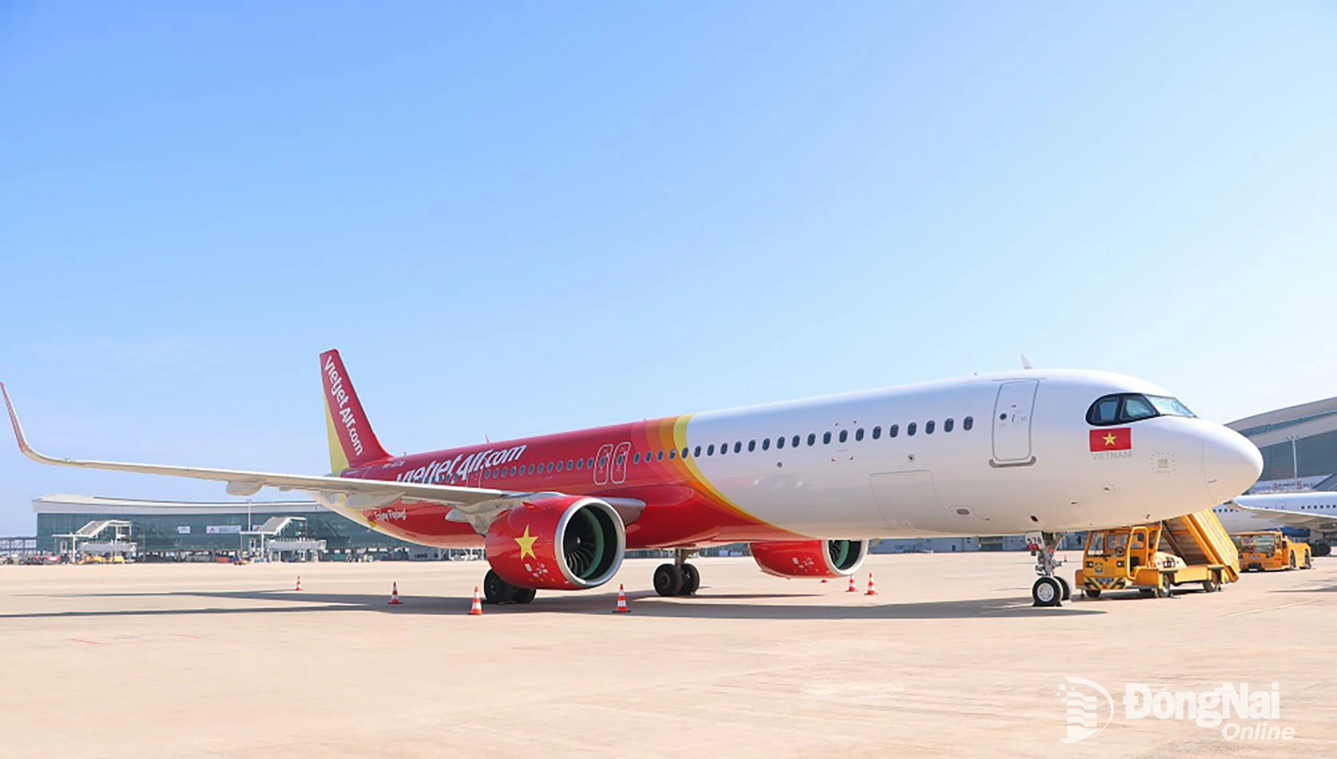 | Máy bay của Vietjet Air đậu trên khu vực sân đỗ Sân bay Long Thành. Ảnh: Phạm Tùng |
