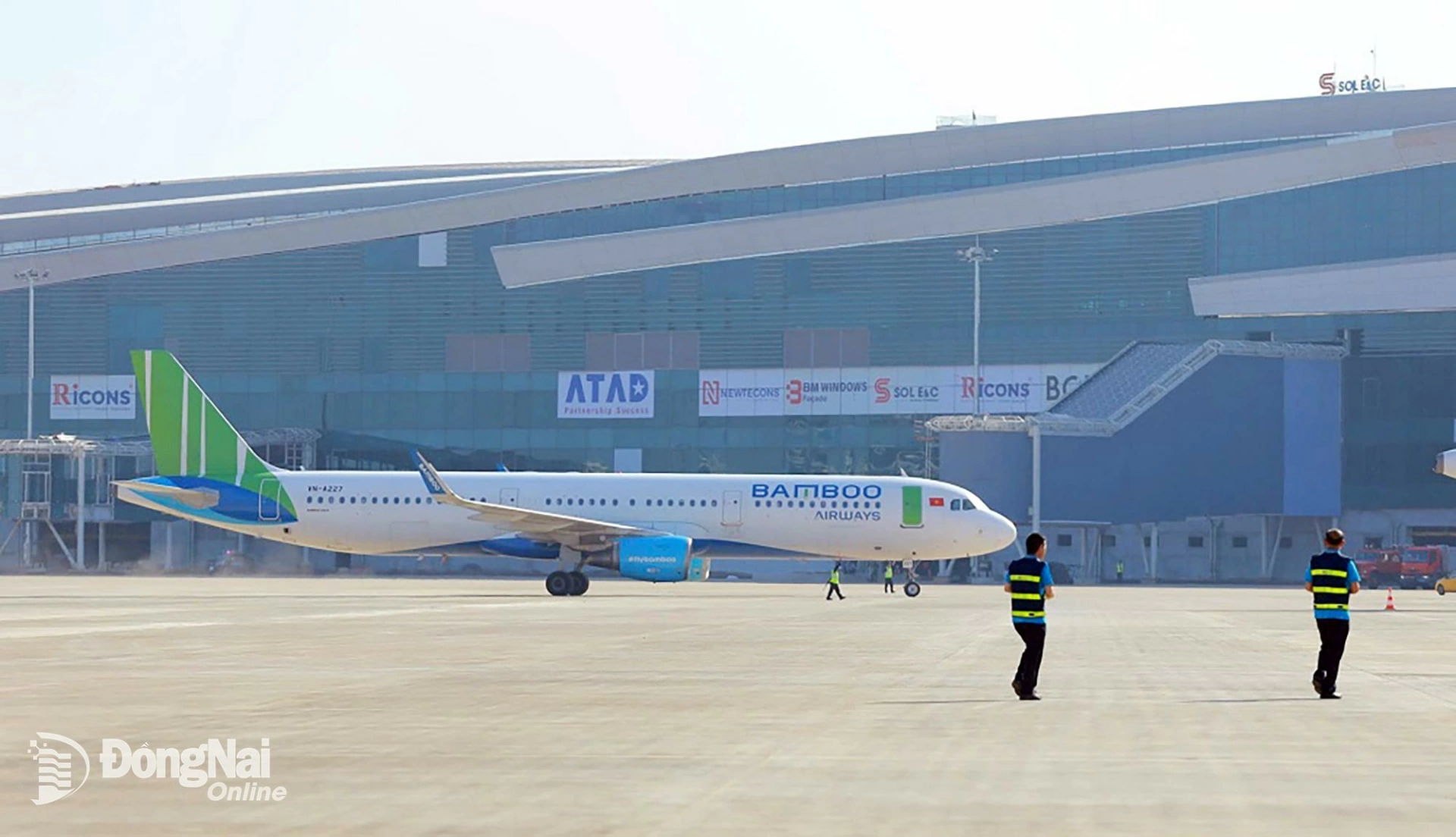 | Tiếp sau máy bay của Vietjet Air, máy bay của hãng Bamboo Airways cũng hạ cánh xuống Sân bay Long Thành. Ảnh: Phạm Tùng |