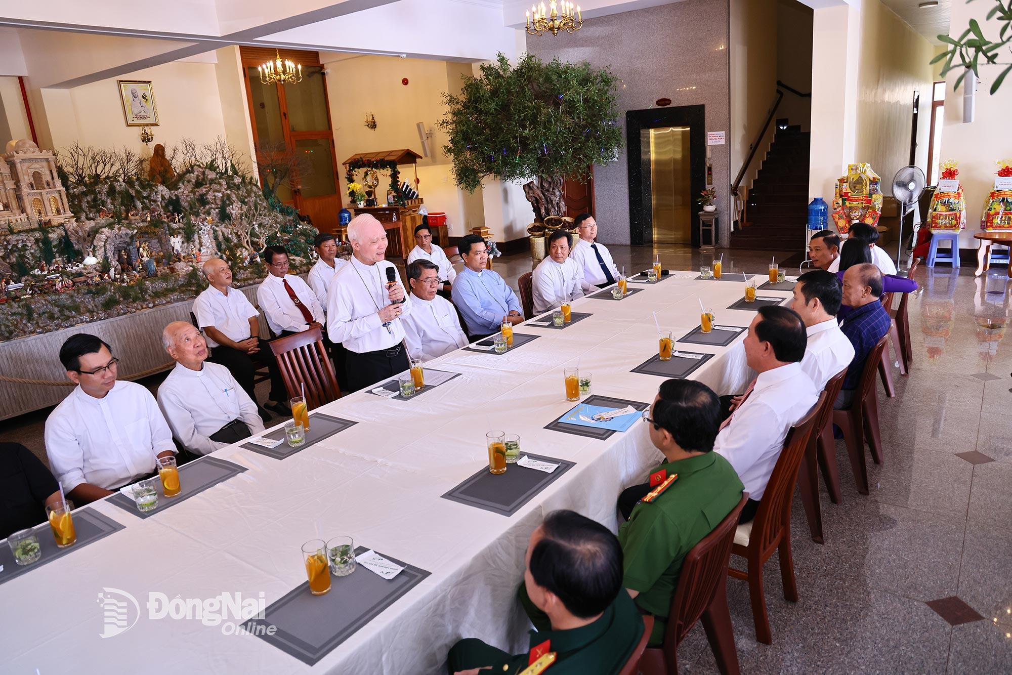 Chủ tịch UBND tỉnh vui mừng thông tin đến các linh mục, chức sắc về những thành tựu to lớn trong phát triển kinh tế - xã hội, đảm bảo quốc phòng - an ninh của tỉnh đạt được trong năm 2025. Trong đó, tăng trưởng tổng sản phẩm GRDP năm 2025 của tỉnh đạt 9,63%, là mức tăng cao nhất trong nhiều năm trở lại đây, đồng thời Đồng Nai là tỉnh có tốc độ tăng trưởng cao trong tốp đầu cả nước. Tỉnh tiếp tục làm tốt công tác chăm lo đời sống, tinh thần, đảm bảo tốt nhất các quyền tự do tín ngưỡng của nhân dân, trong đó có đồng bào Công giáo trên địa bàn tỉnh.