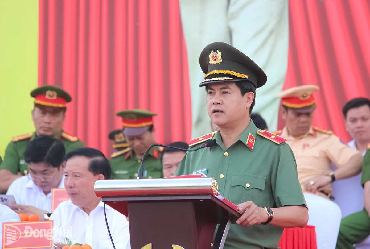 | Thiếu tướng Nguyễn Đức Hải, Ủy viên Ban Thường vụ Tỉnh ủy, Giám đốc Công an tỉnh Đồng Nai phát biểu tại buổi lễ. Ảnh: Trần Danh |