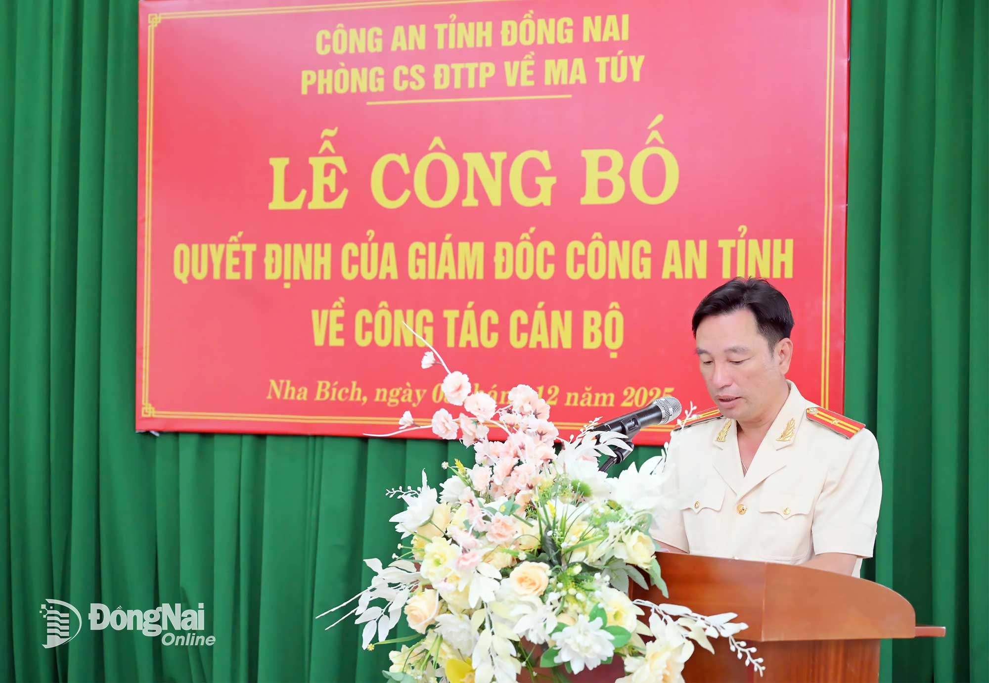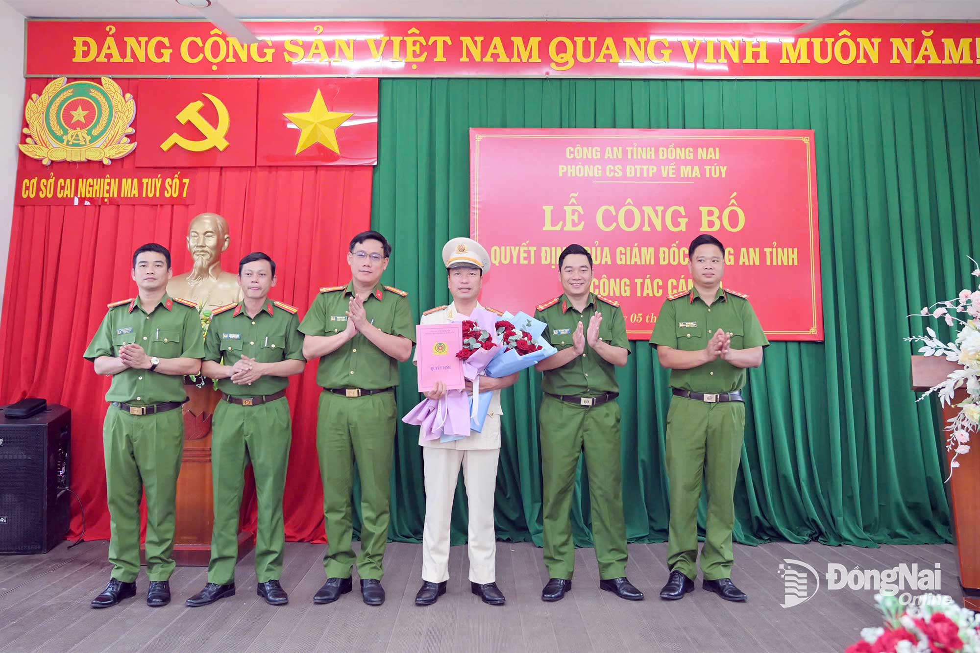 Tại buổi lễ, lãnh đạo Phòng Cảnh sát điều tra tội phạm về ma túy trao quyết định của Giám đốc Công an tỉnh về việc tuyển chọn, tiếp nhận vào lực lượng Công an nhân dân, đồng thời phong cấp bậc hàm Thiếu tá nghiệp vụ cho công dân Nguyễn Phong Phú, sinh năm 1976, quê quán xã Xuân Trường, tỉnh Ninh Bình, nguyên là bác sĩ tại Cơ sở Cai nghiện Minh Lập, thuộc Sở Lao động, Thương binh và Xã hội tỉnh Bình Phước (cũ).